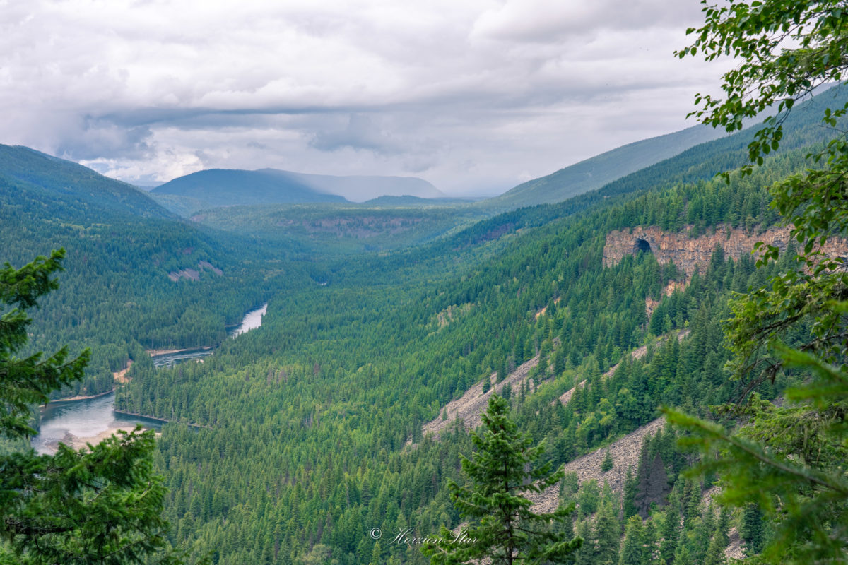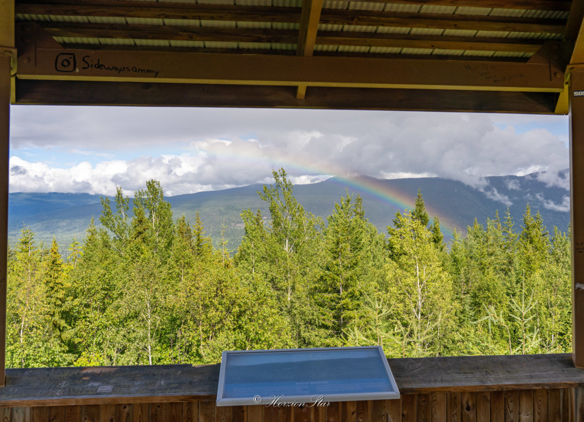 离开开胃菜瀑布,出门看到指示牌显示左拐去一个观景台,于是没回大路,直接沿着全是坑的土路开了一阵,到了观景台。这个景点完全没有人。平常应该是大家从Spahats Creek Falls走个1公里过来看的。但现在公园人那么少,遇到熊的几率就大增,导致hiking过来的人更少。