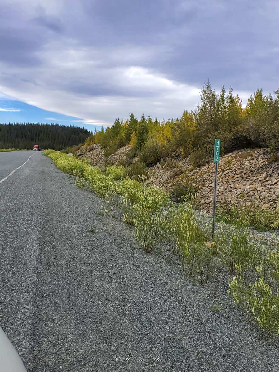 到这里是我们Kluane国家公园走的最北的地方了,也是阿拉斯加公路走的最北端了,阿拉斯加公路1762公里标杆。从那天的Dawson Creek的0公里处到这里,已经在阿拉斯加公路上开了这么远了。小小佩服一下自己。