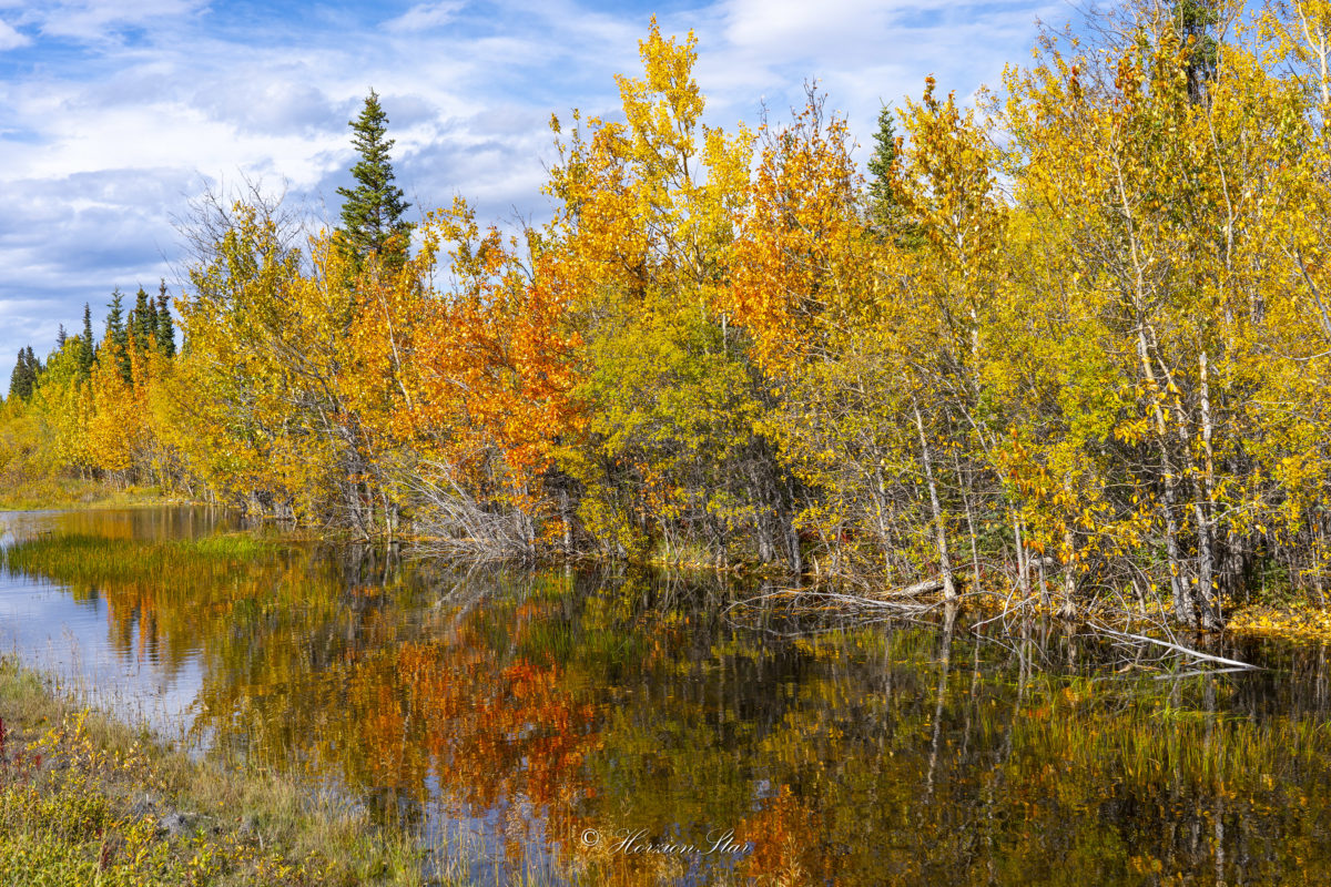 昨天ranger说过了Destruction Bay就没有什么景了。其实只是大景点没了。这里的秋色更浓。随处即景。