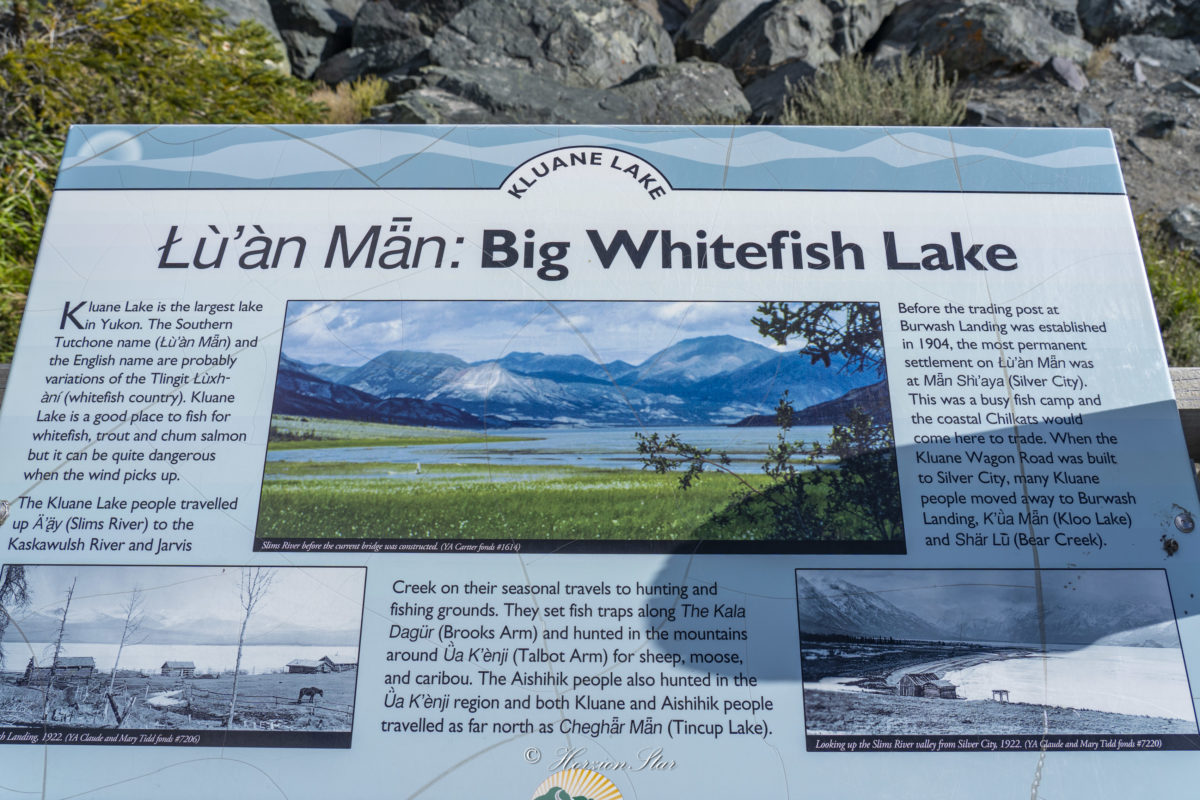 旁边的介绍牌,讲述印第安人和科伦湖的故事,的故事,的故事……Kluane Lake原名叫大白鱼湖。好直白。