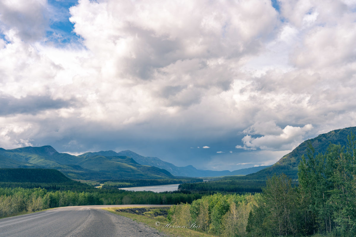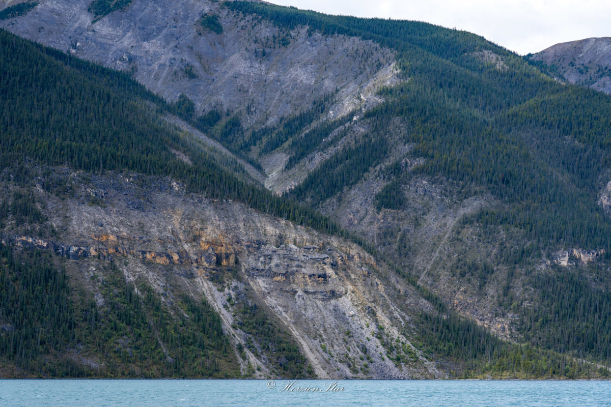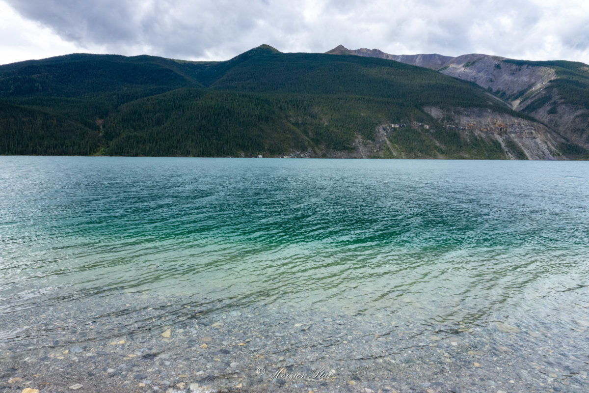 今天基本上都是阴云密布,所以对今天的路上项目看Muncho Lake,也没太大期望值。开到了湖边,也的确是黑山黑水。