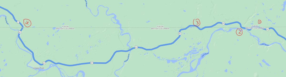 这一路不停的进出Yukon。直到第四次进入育空,才到了Watson lake。