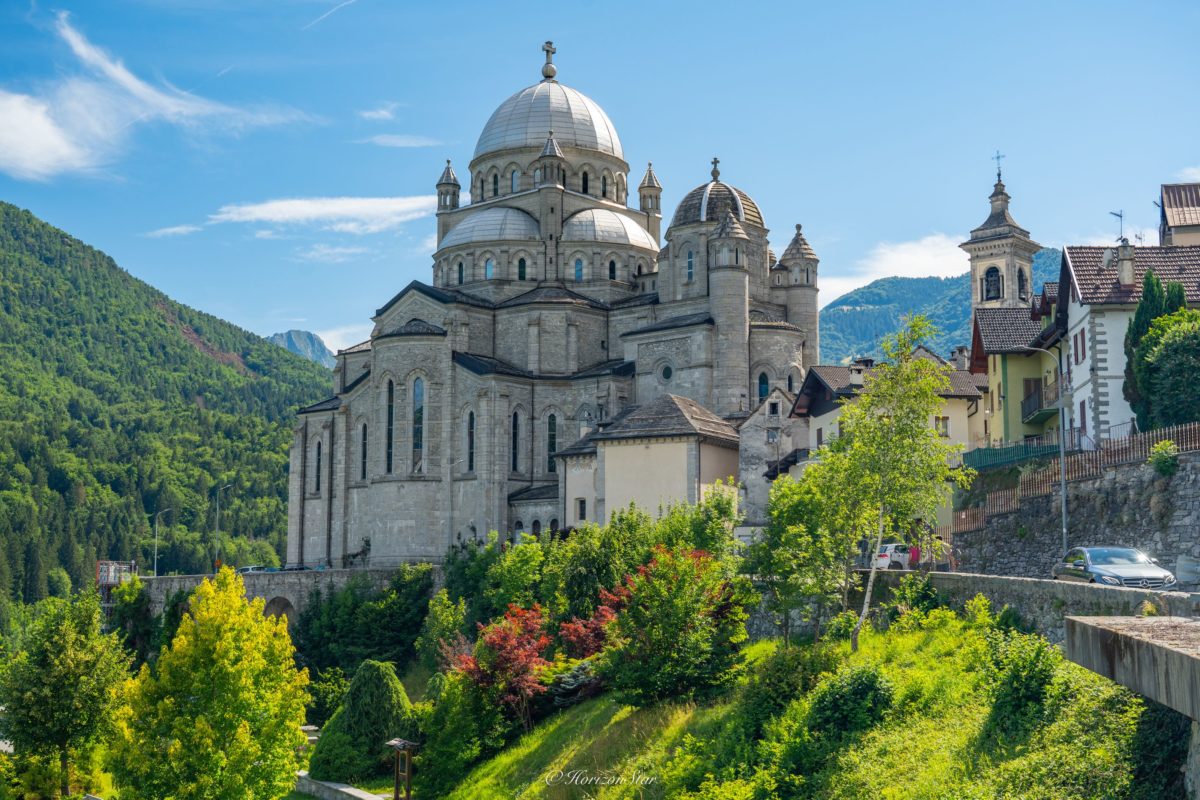 突然,就在这崇山峻岭中,在这一个个小小的聚集地中,out of no where,就出现了这么大个儿一教堂:Santuario della Madonna del Sangue。让人觉得遇到了幻境。