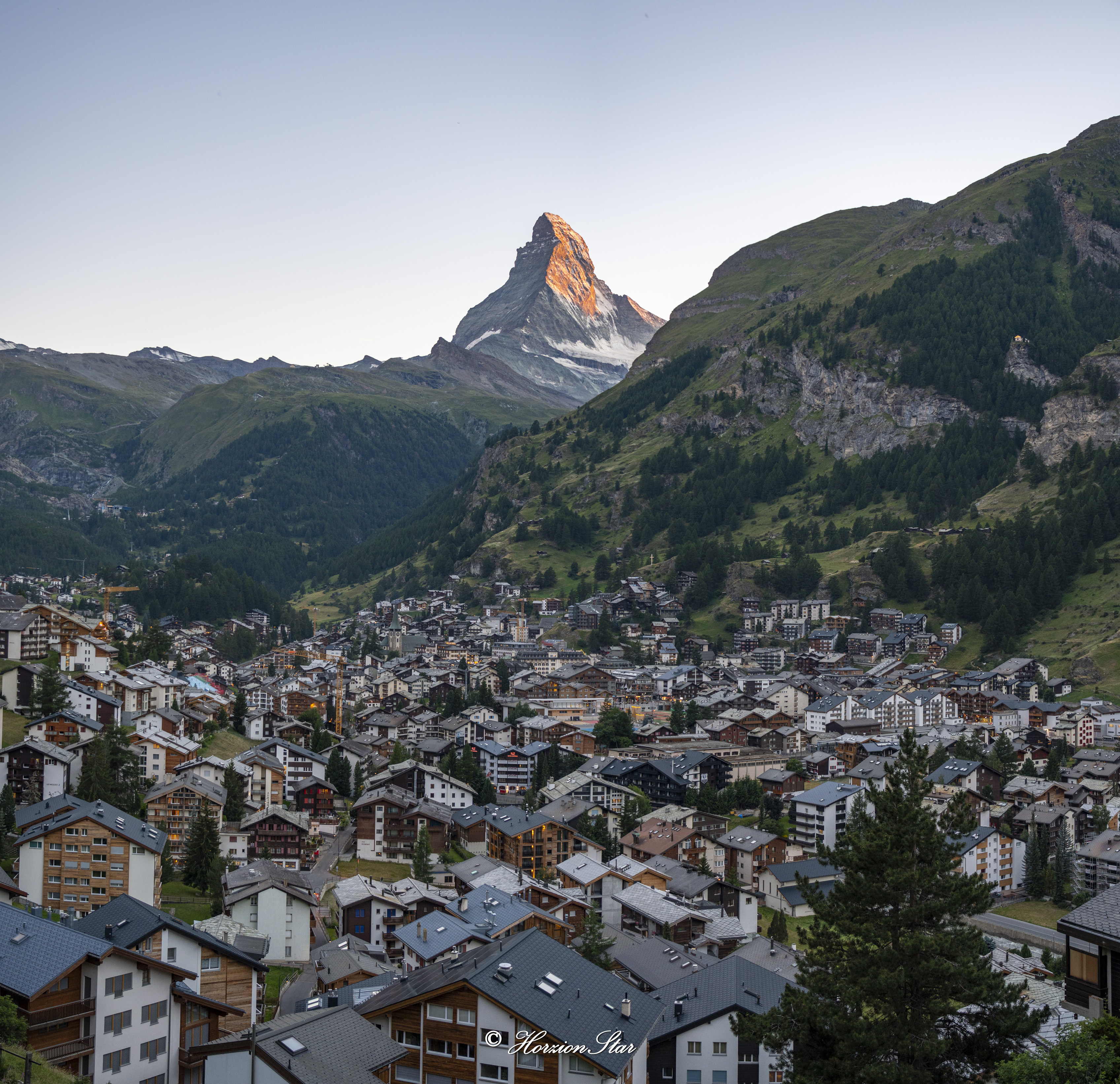 在酒店房间休息一阵,傍晚去Zermatt overview。一路陡坡,爬的遥遥无期,到了气喘吁吁。