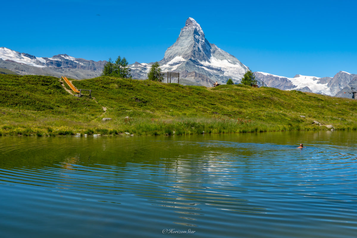 留下大叔和旁边两个摄影师,对着稀碎的马特宏倒影发呆。