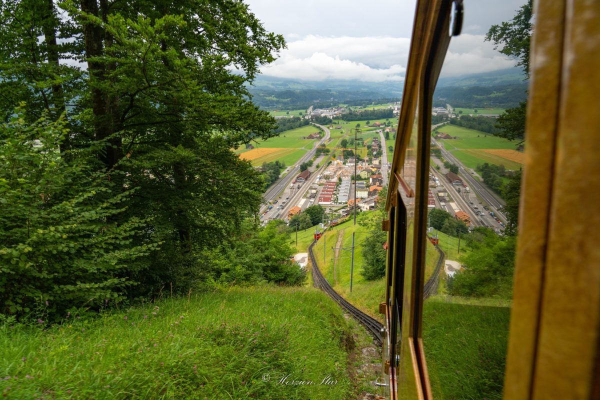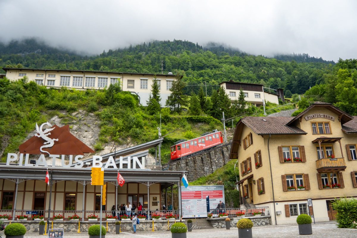 20分钟开到Alpnachstad车站,从这里乘坐Cogwheel Train(齿轮小火车)到山顶。