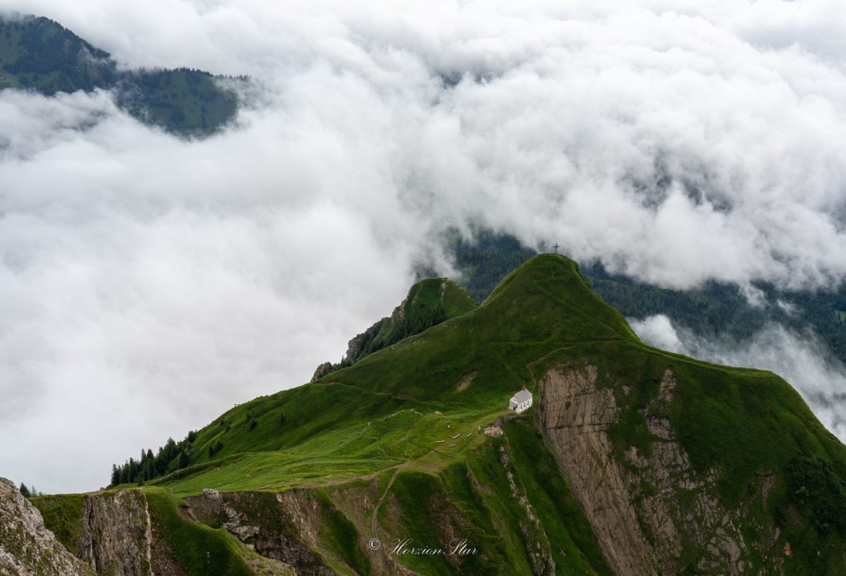 白云间,青山上,一个小教堂坐看云卷云舒。不需要教堂和上帝沟通,这里已经是天堂了。