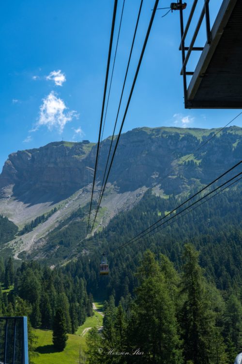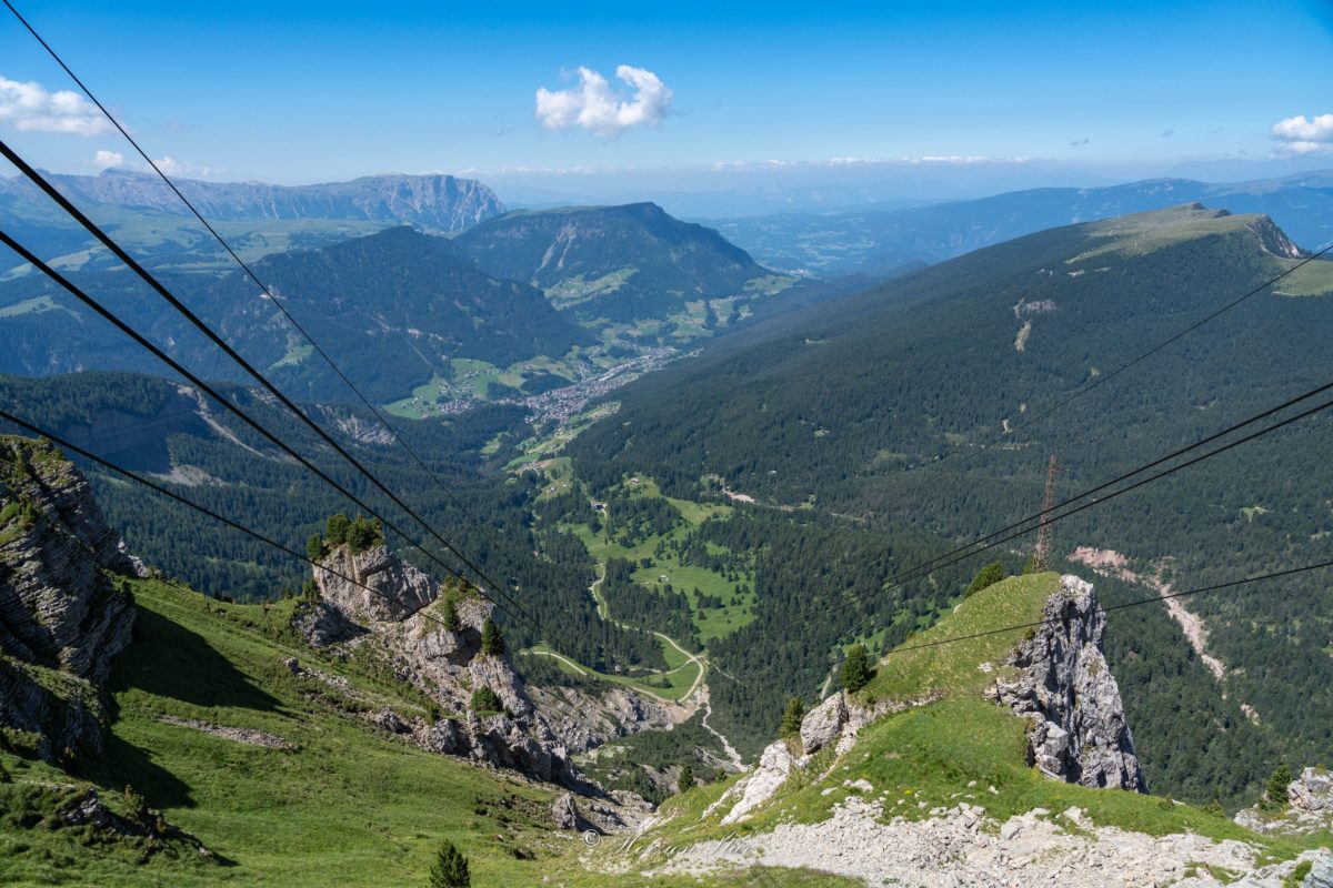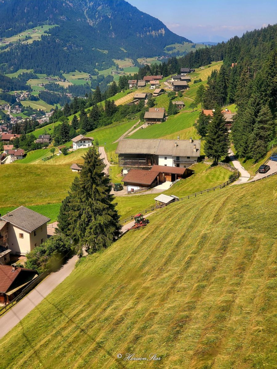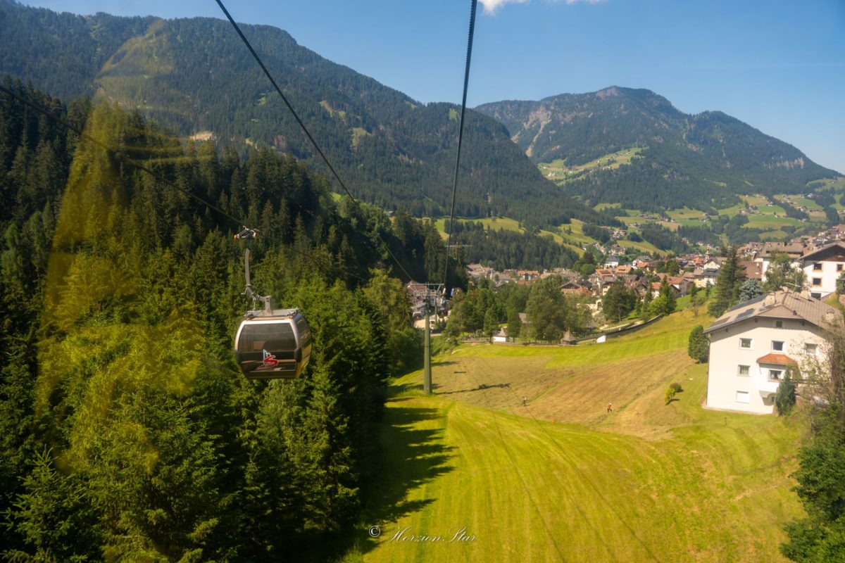 沙丁鱼大罐头被缆绳拖到了顶。俯瞰Ortisei小镇。这么远的缆车,37欧元来回真不贵,特别是和瑞士的票价比。