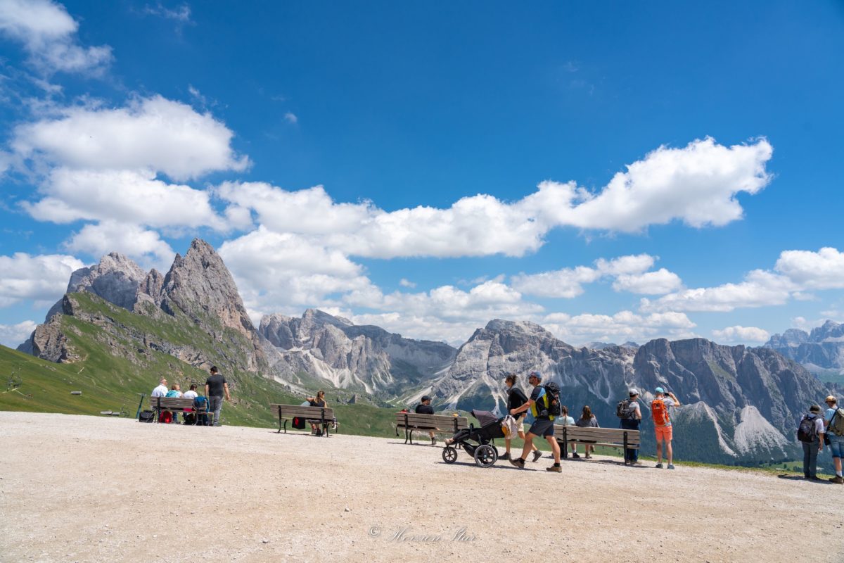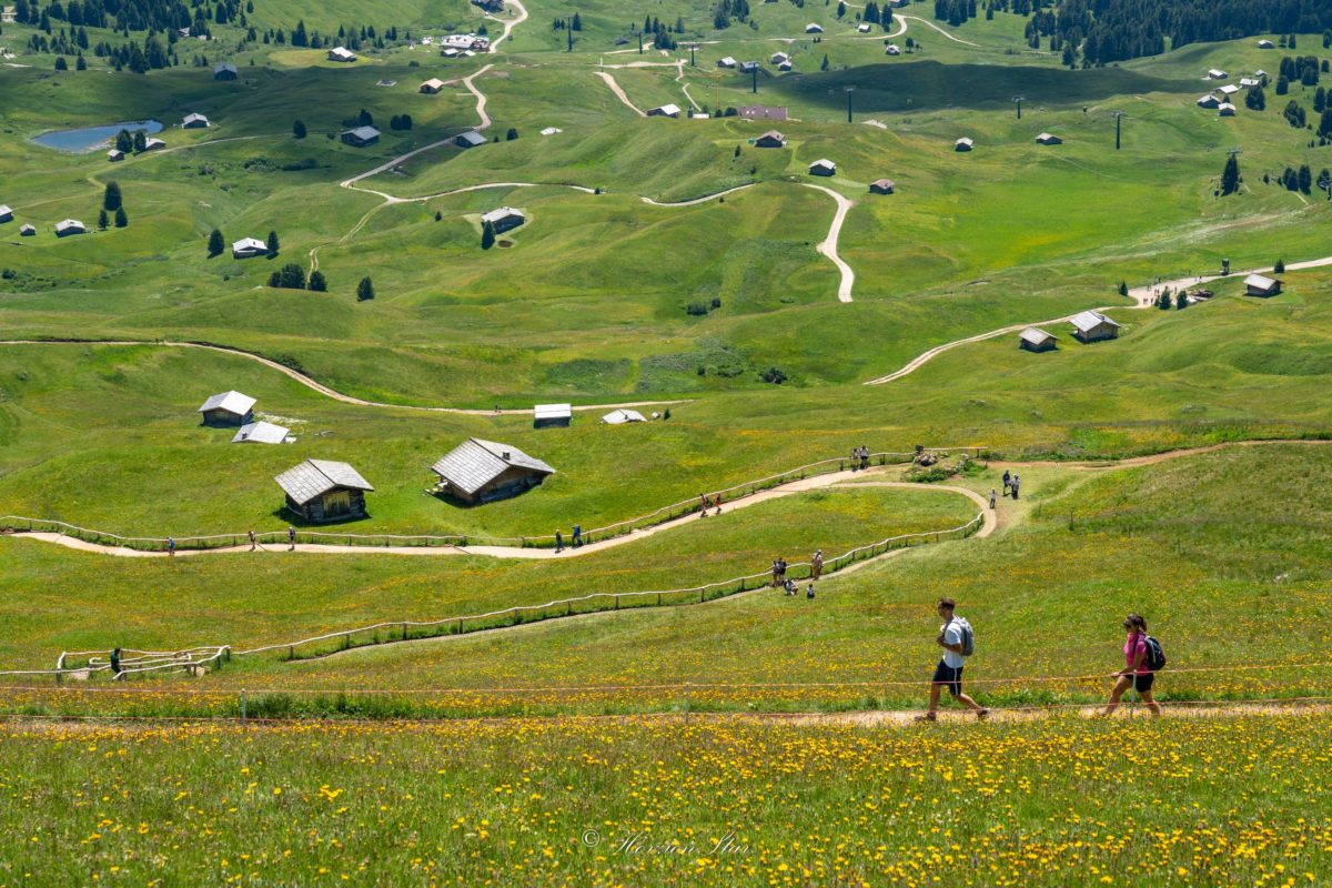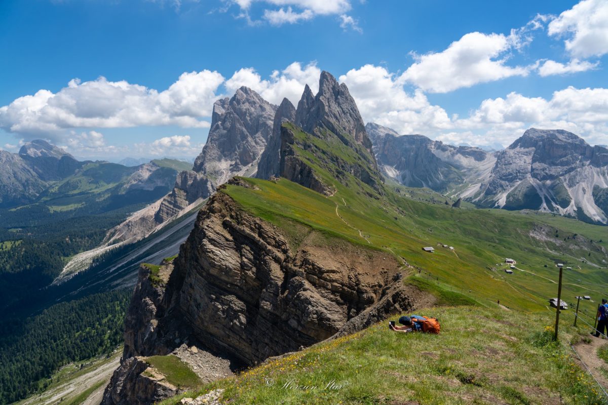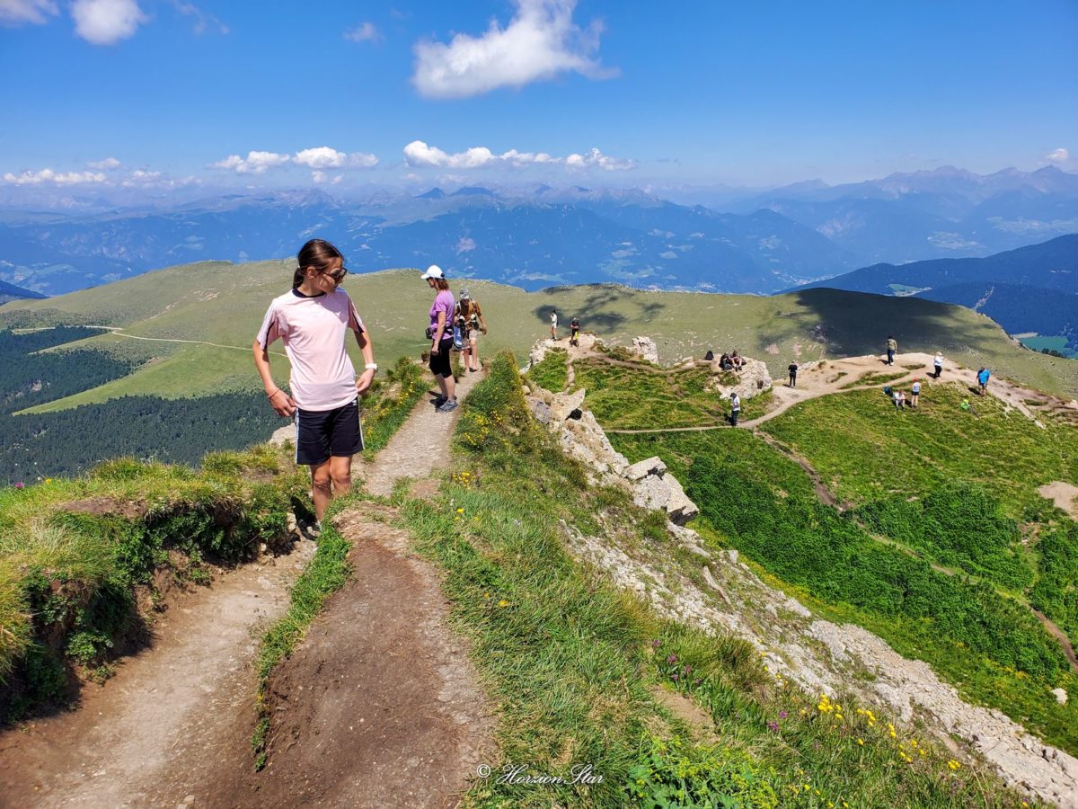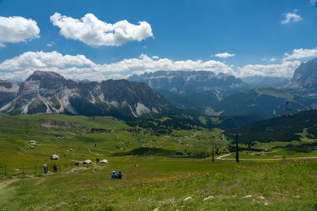 走到坡顶回头看,远方是Seiser Alm。19年来的时候来Seceda缆车关闭,只好在那里玩耍,遥望seceda的山峰。