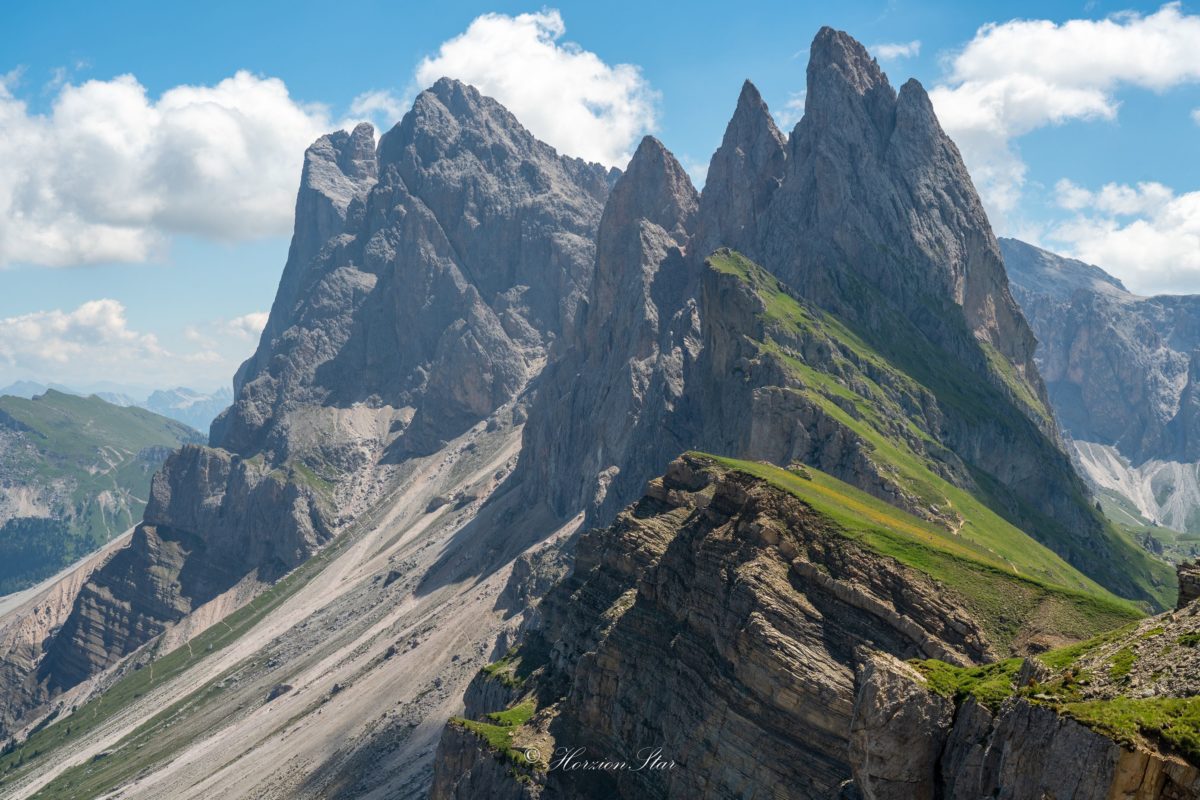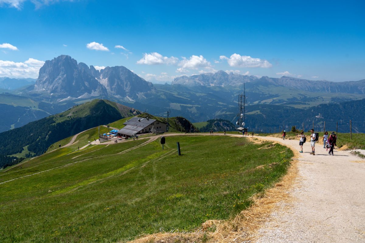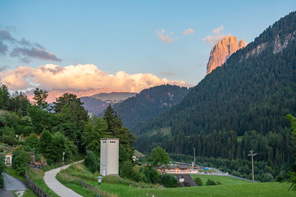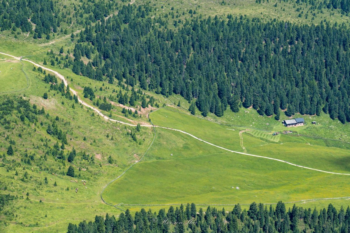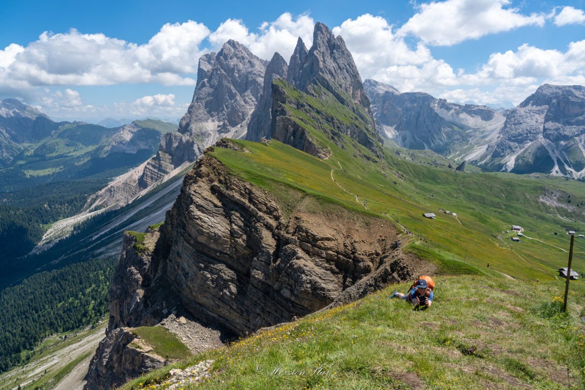 走到坡顶回头看,远方是Seiser Alm。19年来的时候来Seceda缆车关闭,只好在那里玩耍,遥望seceda的山峰。