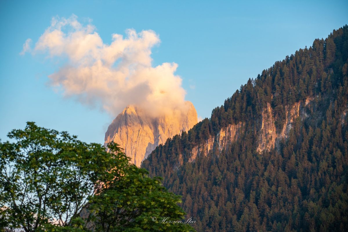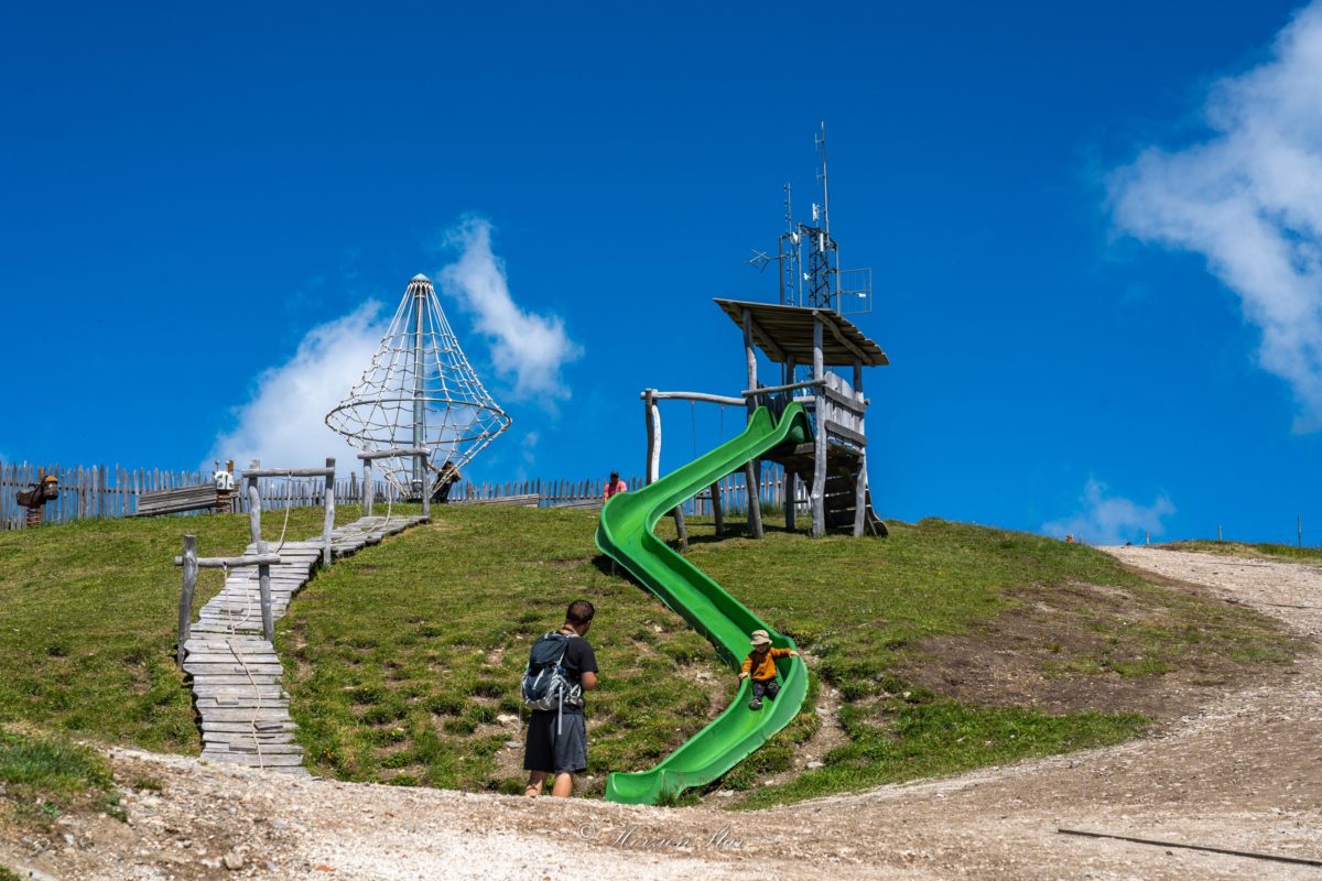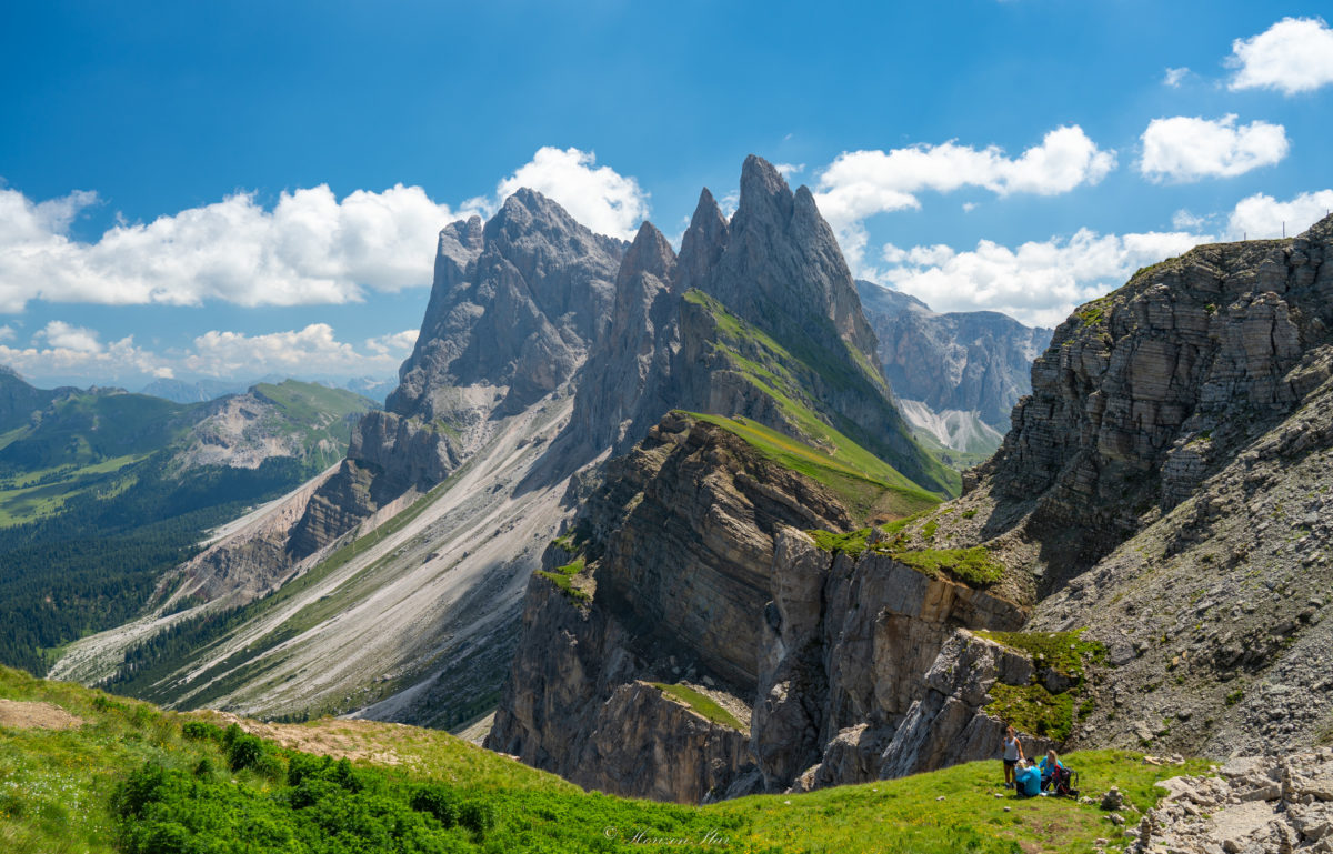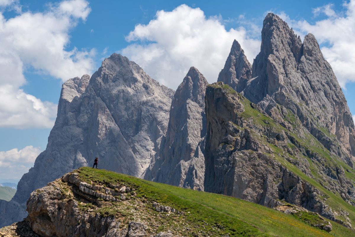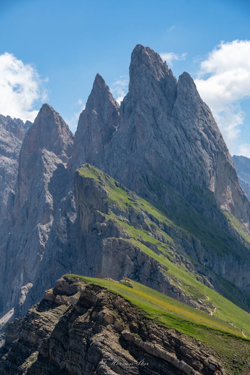 走到坡顶回头看,远方是Seiser Alm。19年来的时候来Seceda缆车关闭,只好在那里玩耍,遥望seceda的山峰。