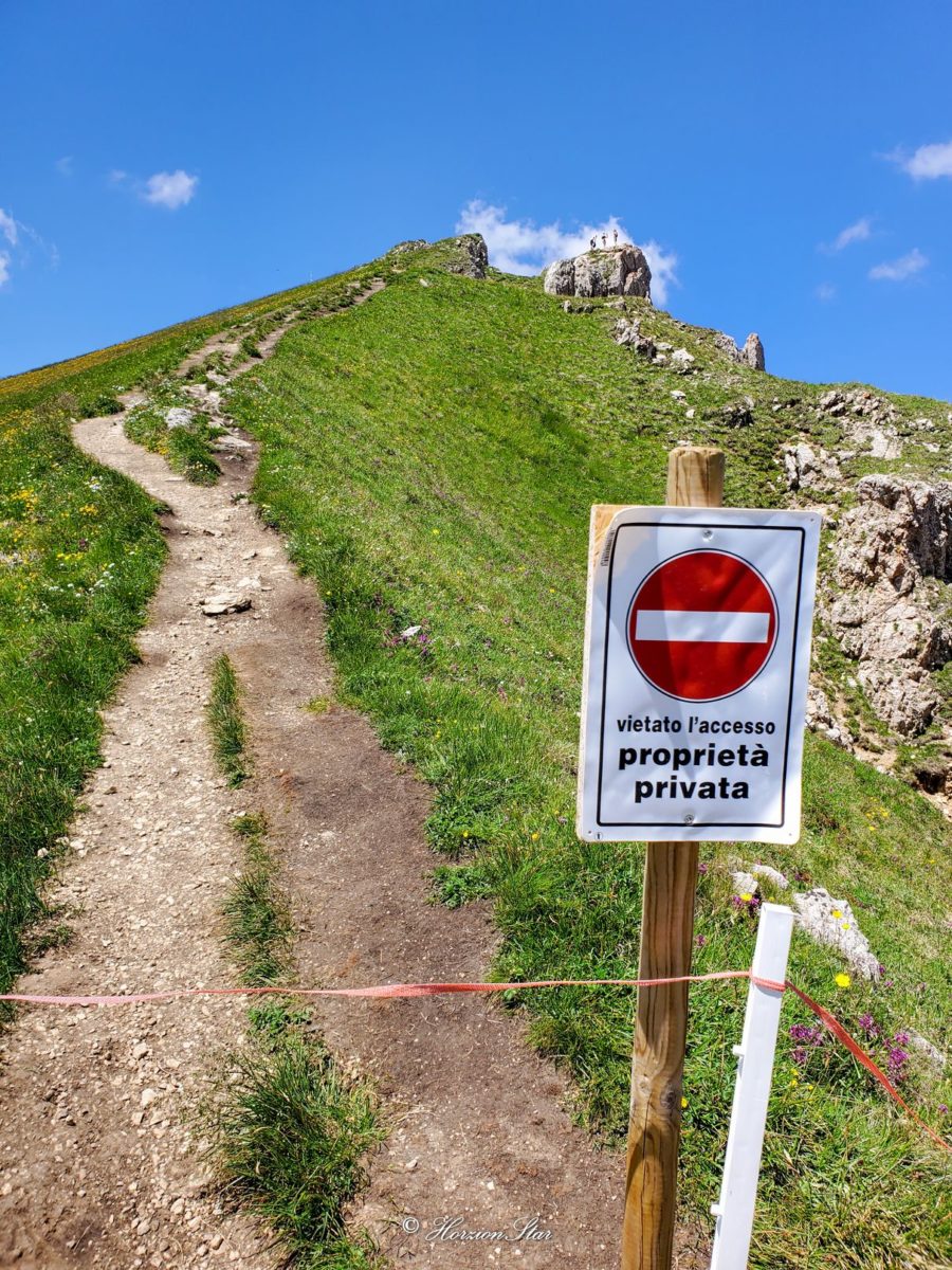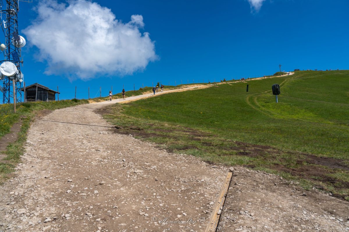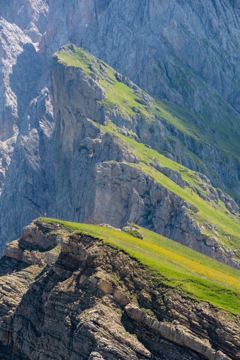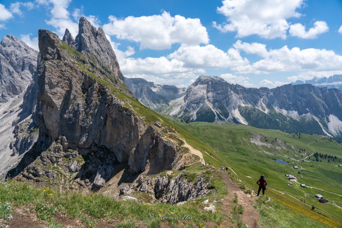 然而在坡顶并没有看到著名的seceda的角度,被旁边的山石挡住了一部分。于是再顺着小径往下走。