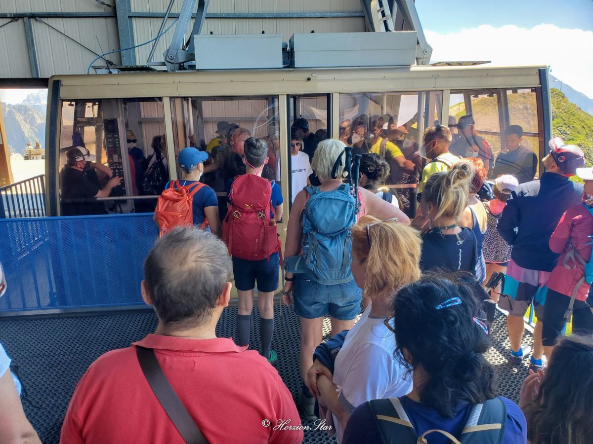 另一侧,缆车下来的沙丁鱼们纷纷走到前面的椅子上休息眺望山下?这是挤缆车累着了?