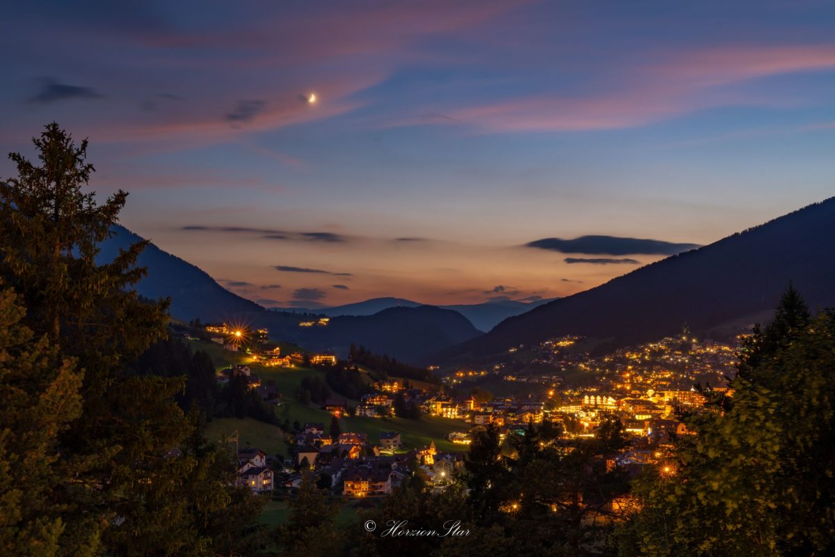 新月伴着晚霞,拉下夜的幕布,小镇重归于寂静。