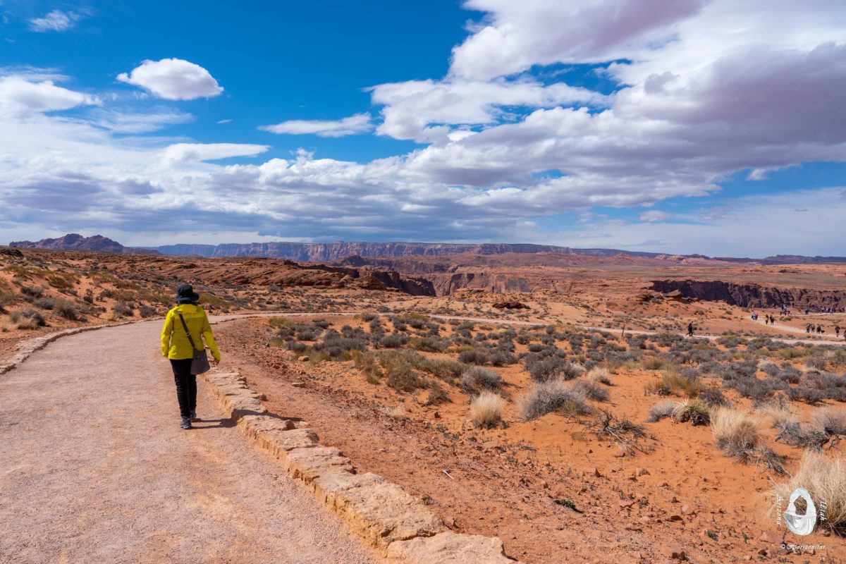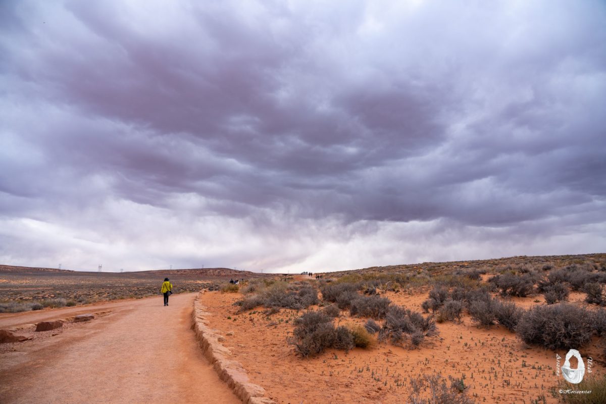 刚出市区,就看到路边好多车。一看路标,Horseshoe Bend。没想到还是到这里了? 周边都是乌云,就头顶一片蓝天。天意难违呢。既然来了,去看看吧?