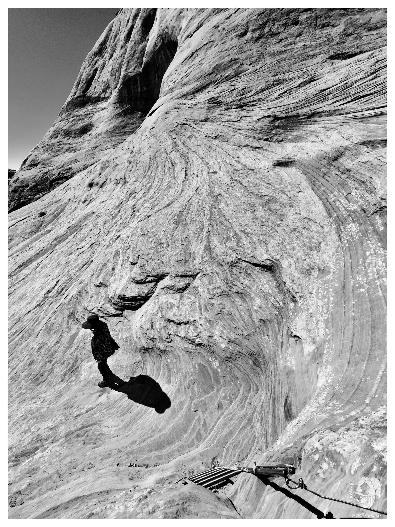Corona Arch旁边的崖壁上,时间已经开始了新的创作。