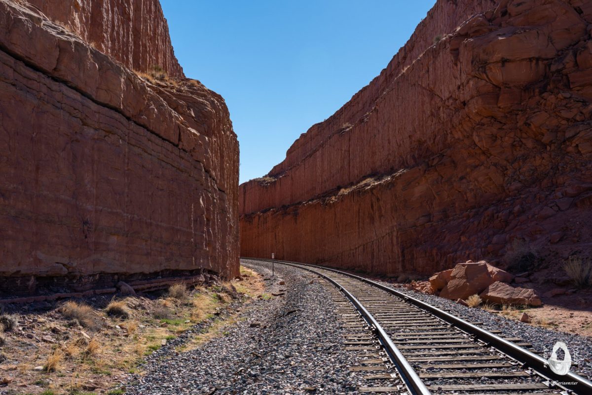 经过拱门公园的门口,最后一次拍一下入口的山崖。旁边就是主干道,大货柜往来不绝,向美国各地输送着养分。
