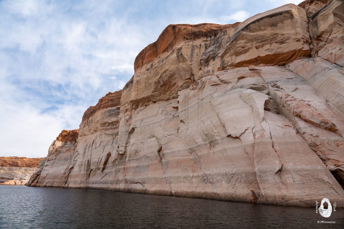 Lake Powell水位最高的是在80年代,那时候水位基本上就是在白色山崖的最高点附近。