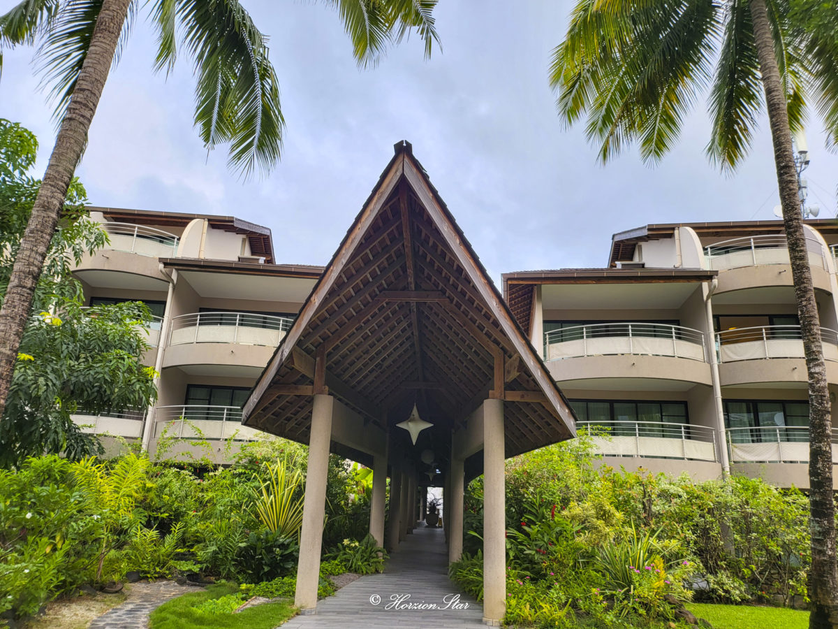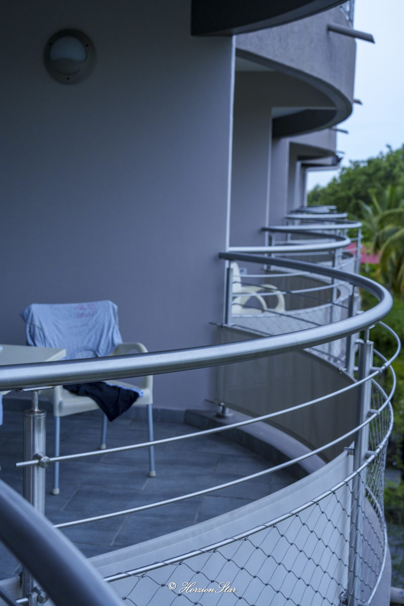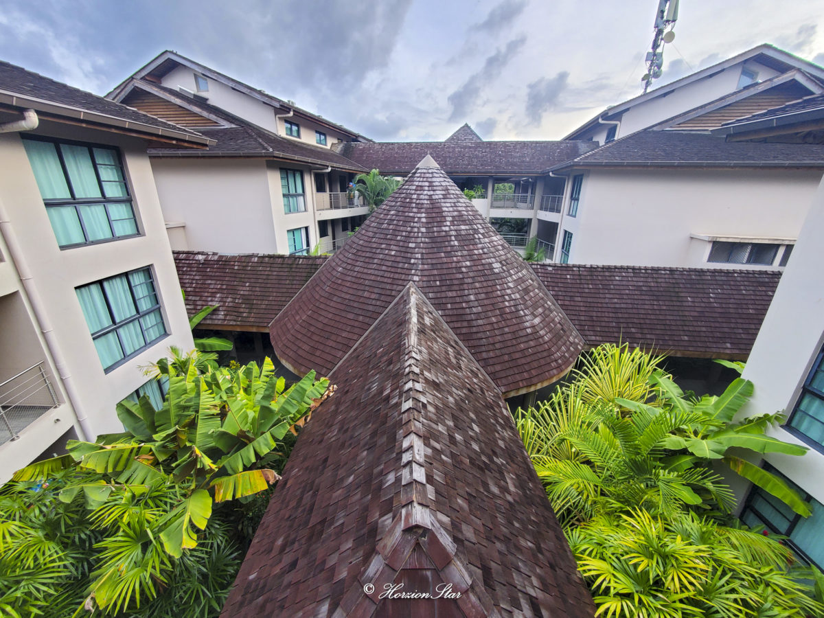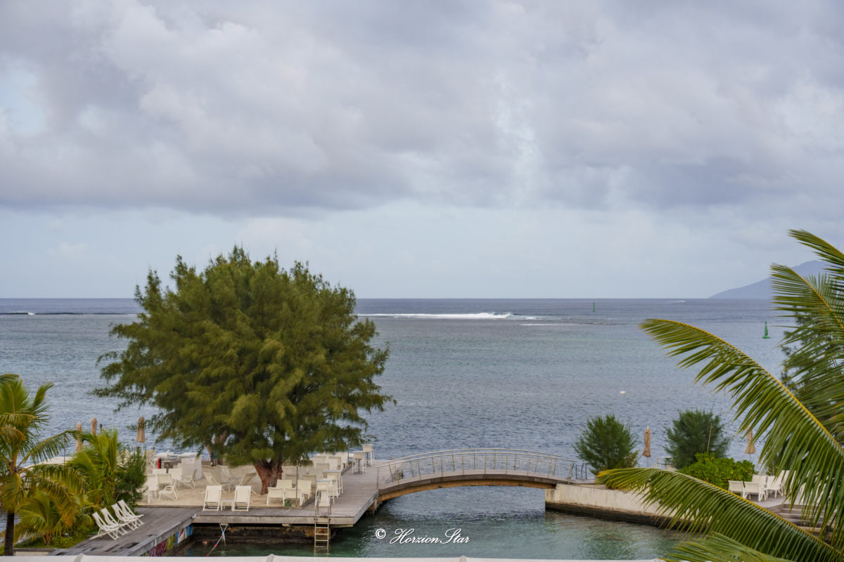 酒店名叫Te Moana Tahiti Resort。位于机场旁边。订在这里主要是图它的地理位置靠近机场和码头。昨晚过来一片漆黑,没看到度假村什么样子。今早到阳台上看看天有多么的阴。