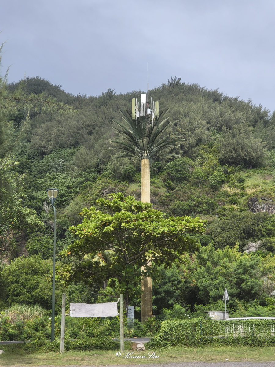 下车就看到一个暗戳戳的身影。一个信号发射塔把自己伪装成一棵椰子树。想起了东成西就里的周伯通,举着一根树枝,“你们看不到我”