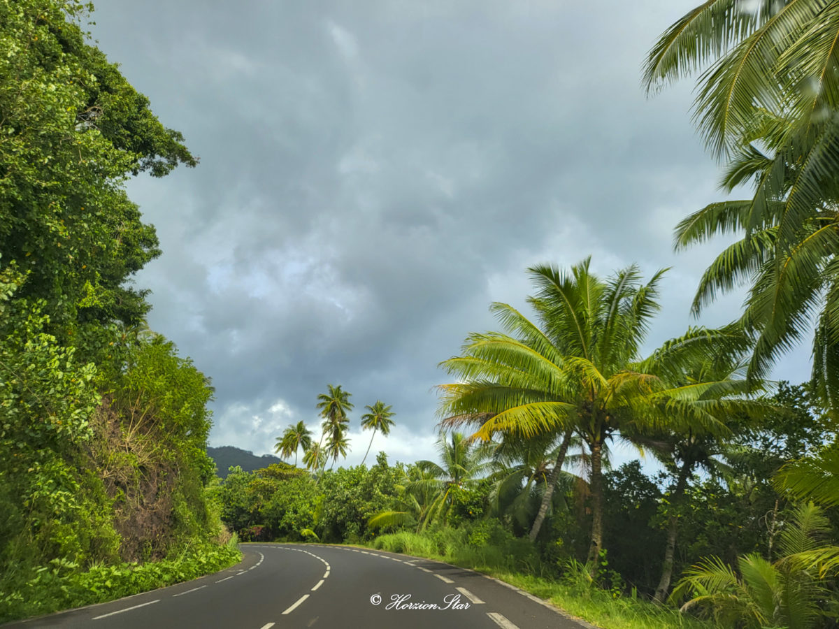 转头看看山里,那里的天才叫掉下来了。终于理解了50mm的雨是怎么来的了。话说波利尼西亚的岛屿,别看都不大,岛的东西南北可能就是四个天气。所以天气预报是没法看的,预报天气的也很郁闷,感觉自己在这里是最不被需要的了。