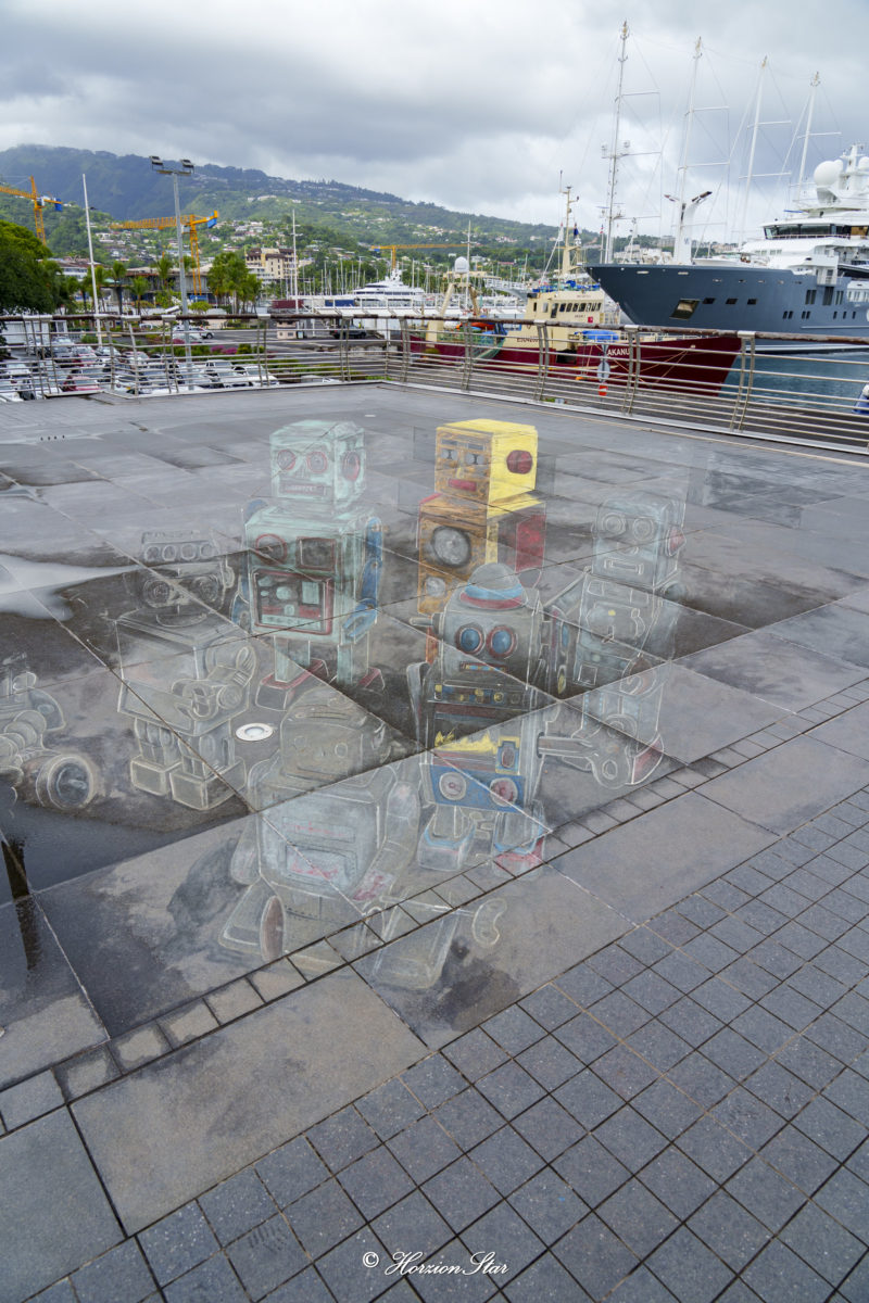 码头周围也没什么好逛的,有一个3D的涂鸦,已经被雨水冲淡了。