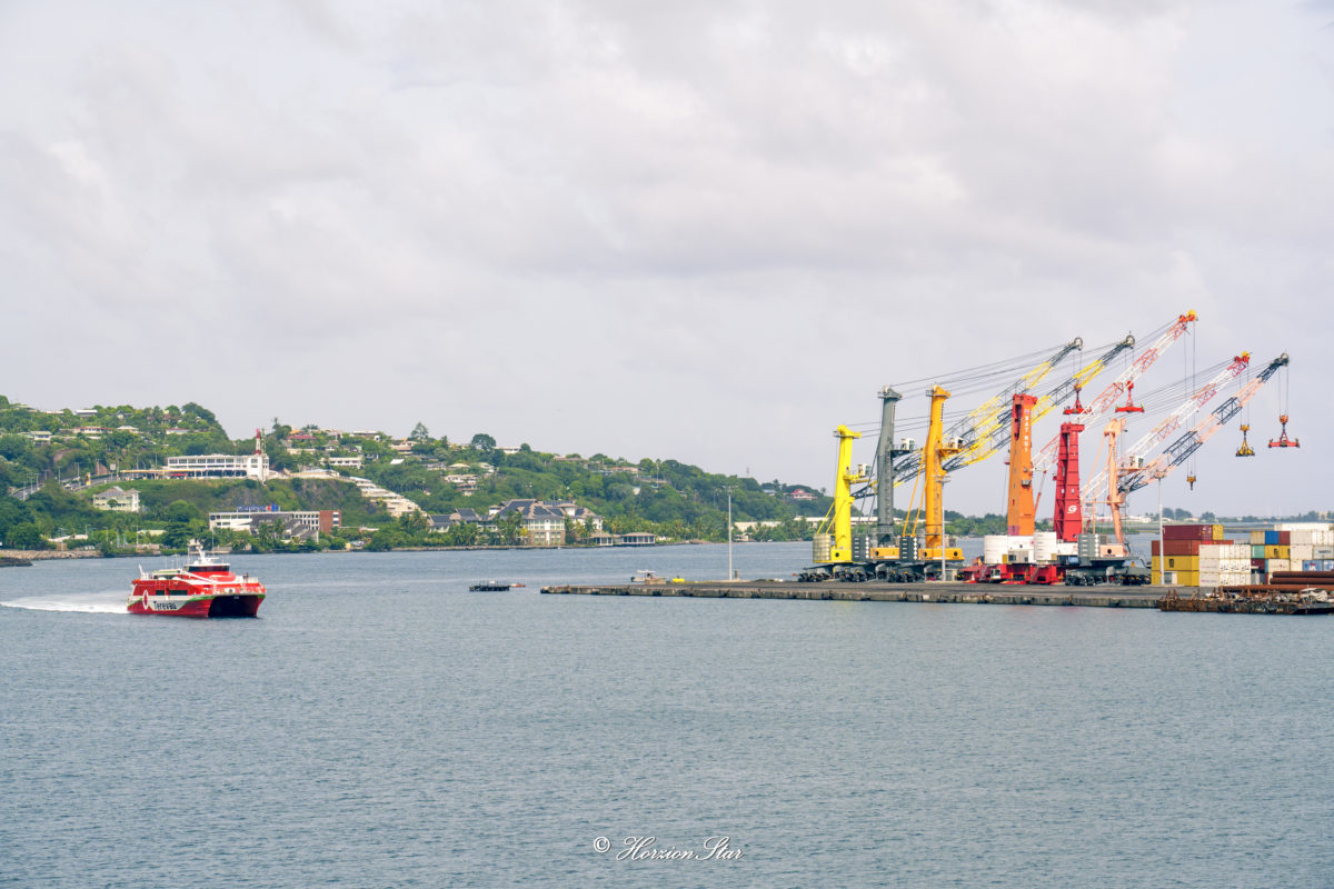邮轮停在海湾内。应该是Trans Pacific路过这里,停一天。所以今天邮轮的乘客运气也不太好。