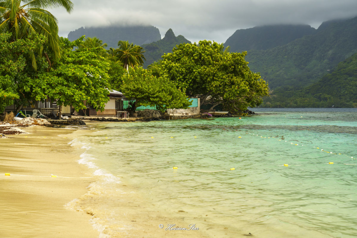 有一组应该也是头一次来波利尼西亚的东南亚年轻人团,大家互相激动的拍照。里面有个女生直接跳海了,也不管自己穿的只是裙子,不是泳衣。本应是豪雨的天,能看到这么美丽的海,激动也可以理解了。