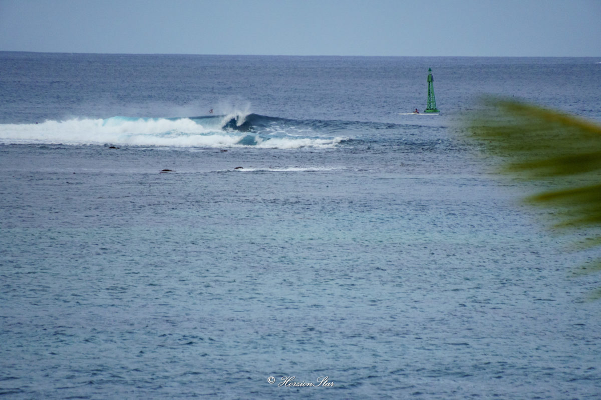 深海的浪,被远处的珊瑚礁挡住。才早晨6点半不到,已经有不少人出来划船了。这么阴的天,海水还是能看出来蓝绿的颜色。