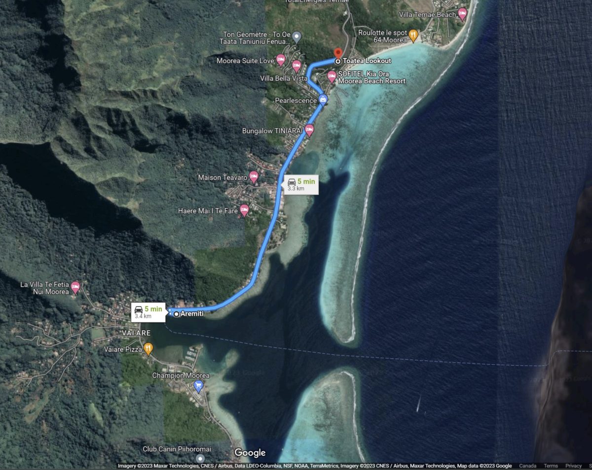 一早起来查天气,照例今天会大雨倾盆的样子。今天去Moorea岛环游。两人决定随缘,雨太大就不去走路了,开车转转就好了。