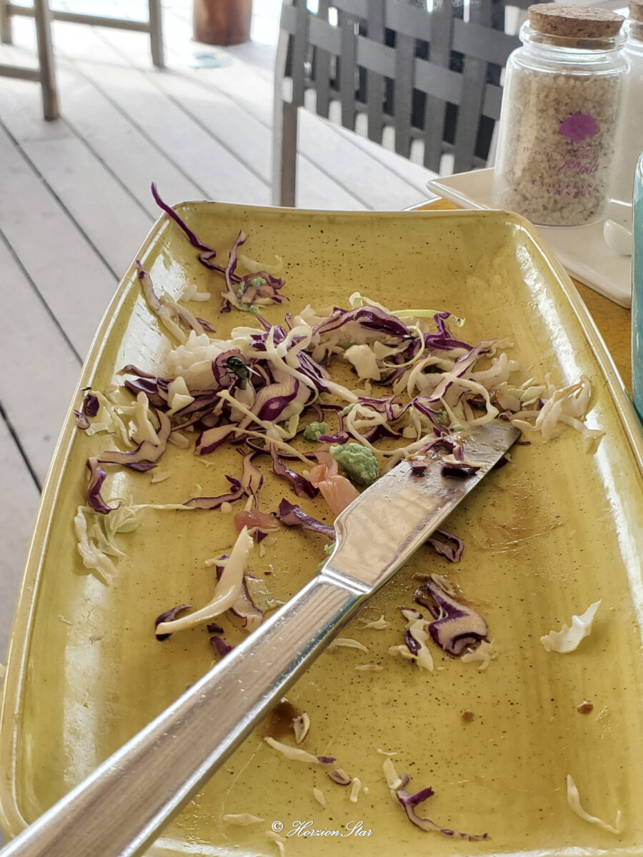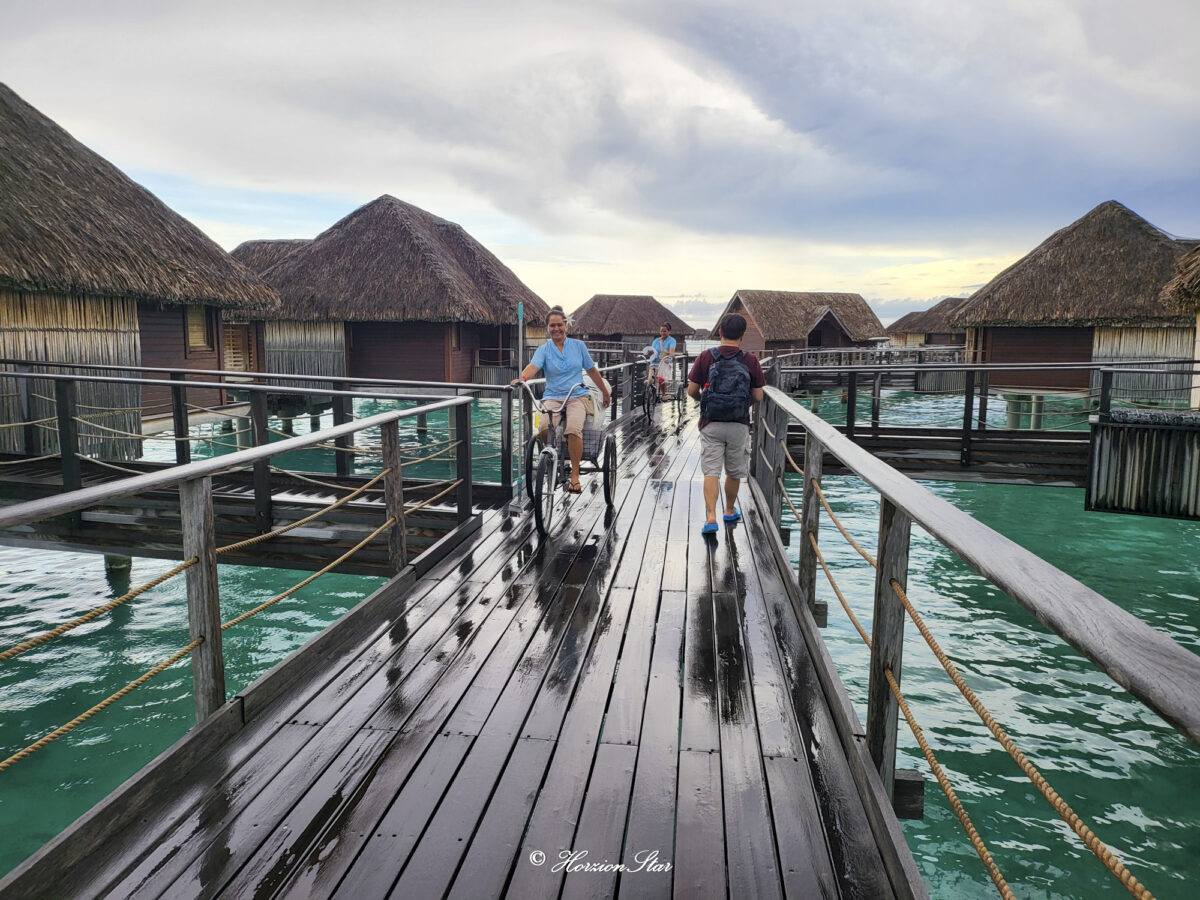 哗哗的下了不到一个小时,可能把天气预报的今日份50mm一遭下干净了。8点半去吃饭的时候,服务员开心的上班了。见面都在喊Ia Ora na (大溪地语的你好,读作:哟Rua娜~)。一开始我俩都是懵的,努力把到嘴边的Aloha给憋回去,回了句Hello。回房间后赶紧搜一下,于是便开始了每天无数遍Ia Ora Na的日子。