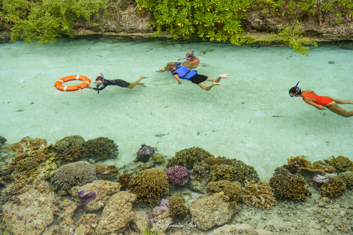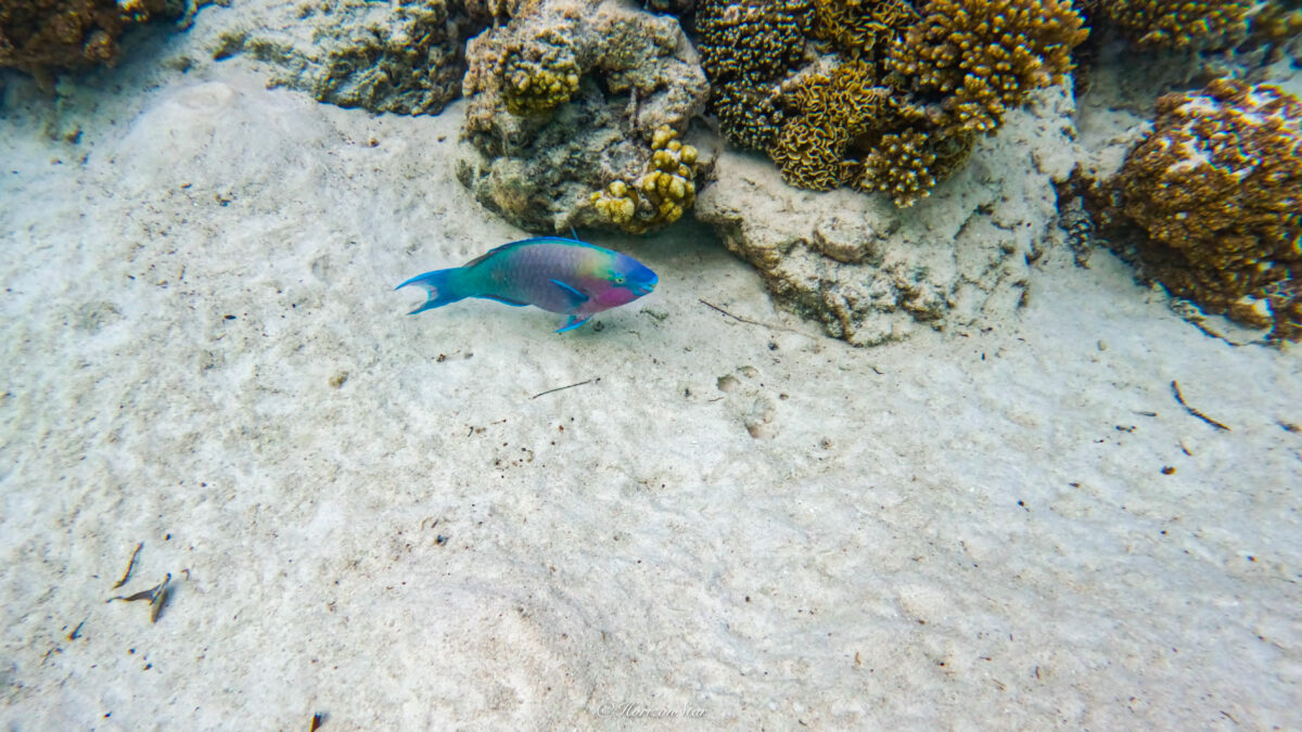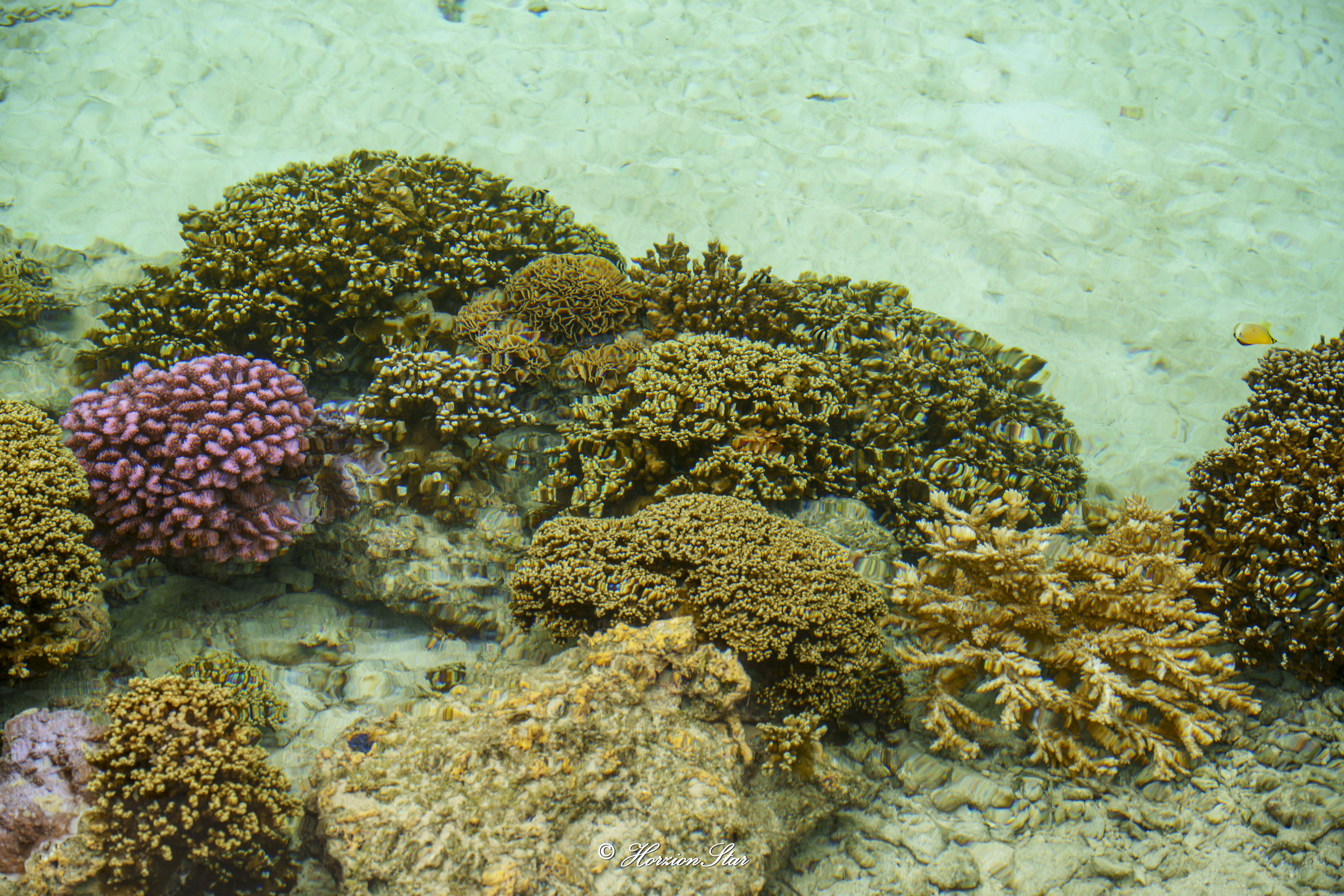 大叔拉着意犹未平的老婆来到浮潜的入口,顺着台阶下到水里,五颜六色的珊瑚和色彩斑斓的鱼马上让你感觉进入了一个瑰丽的世界。