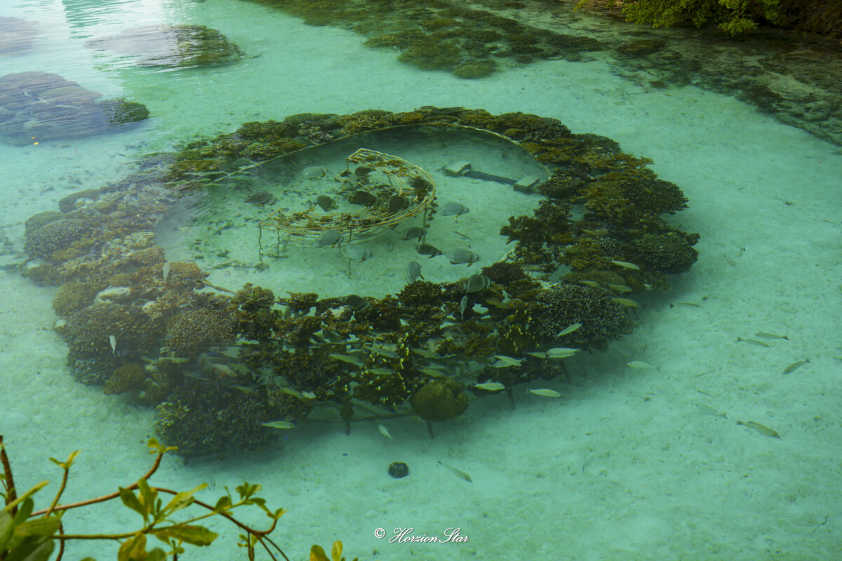 水下还有人工的珊瑚养育圈。这里看着很浅,其实已经有至少3米深了。如果不是下午在这里snorkeling亲眼目测,完全不知道会那么深。甚至现在我都要怀疑一下自己是不是真的浮潜了。