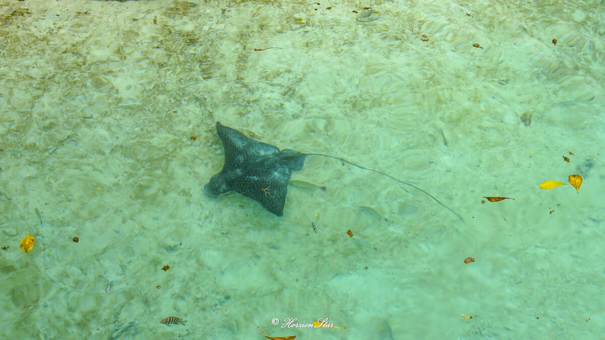 吃完饭,准备把整个resort转一圈。过桥的时候,看到一只电鳐,从桥下翩然游过。翩然的意思是不走直线,转着圈游。导致我俩和一对白人母女在桥面上左右横跳,追着看。那个女儿告诉我这个是个什么什么ray。大叔不明觉厉。