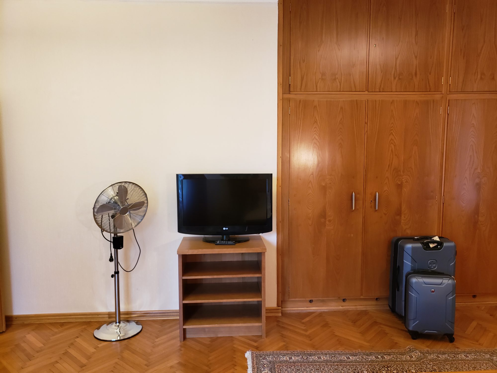 进了卧房, 一个小小的电视机柜摆着第一代LCD电视机,有20厘米厚。