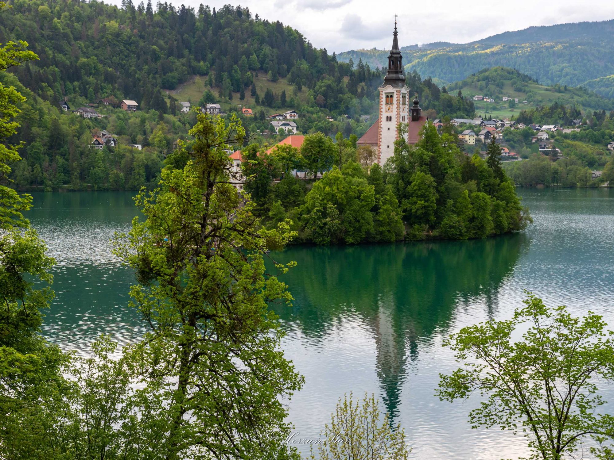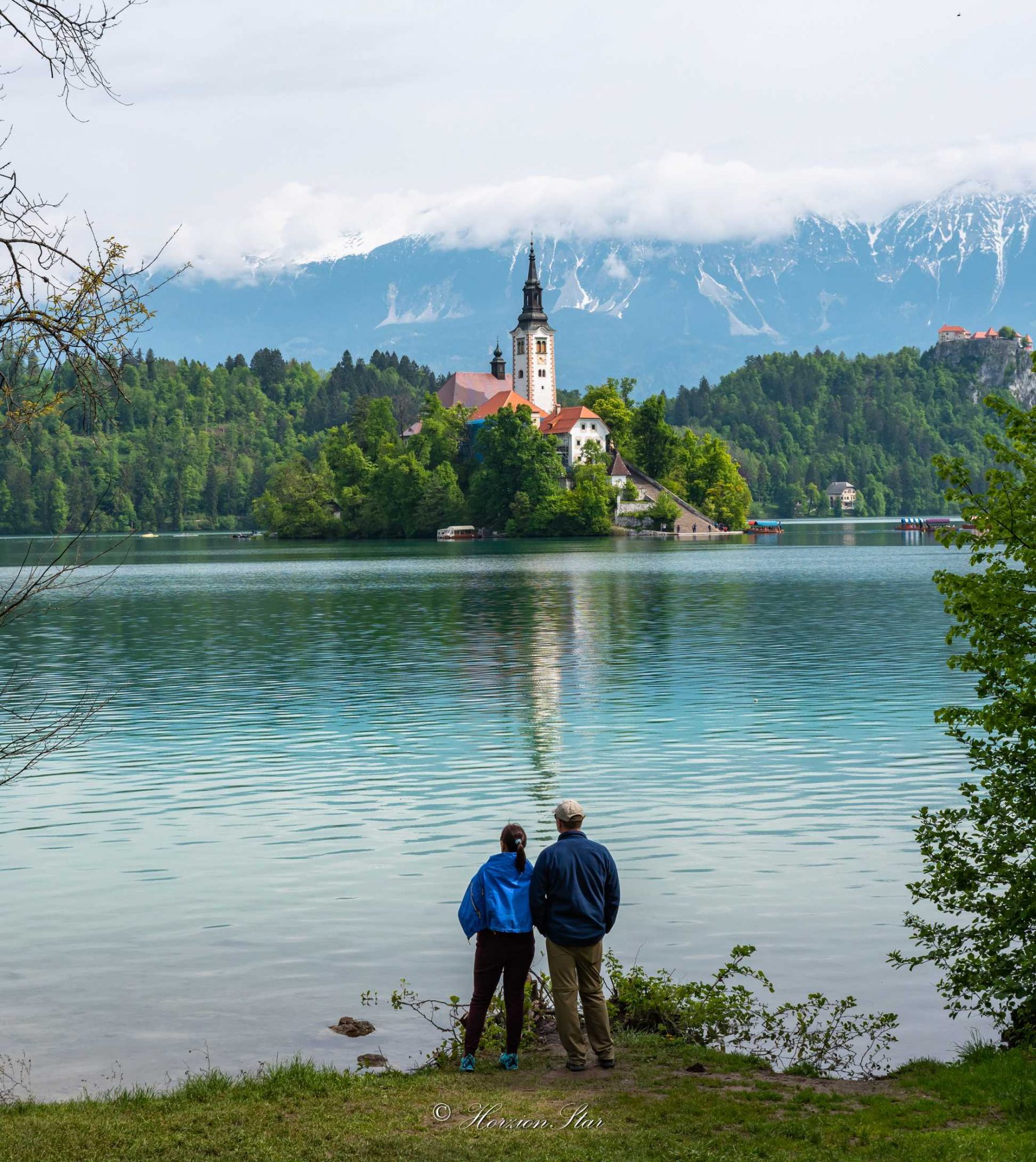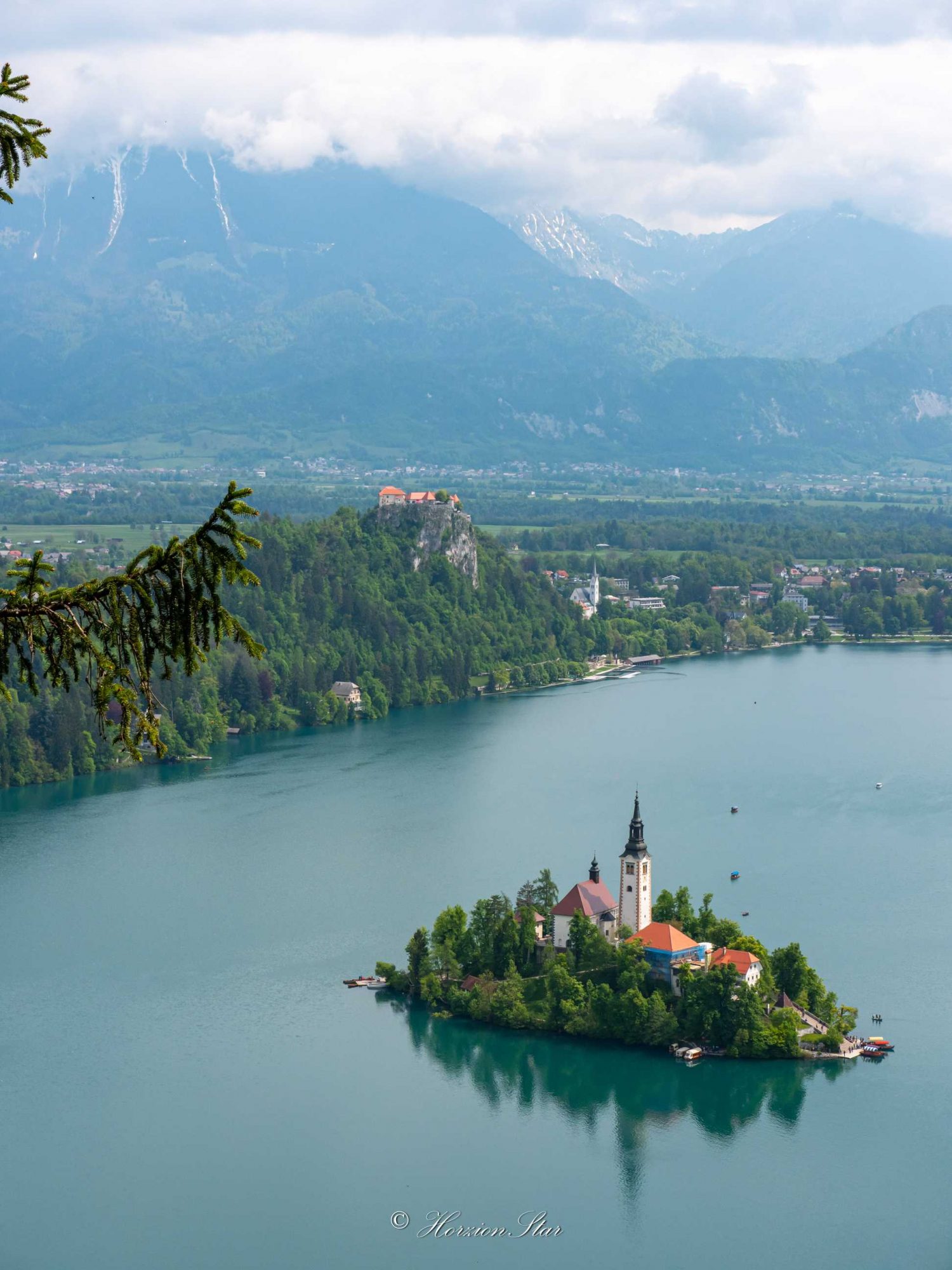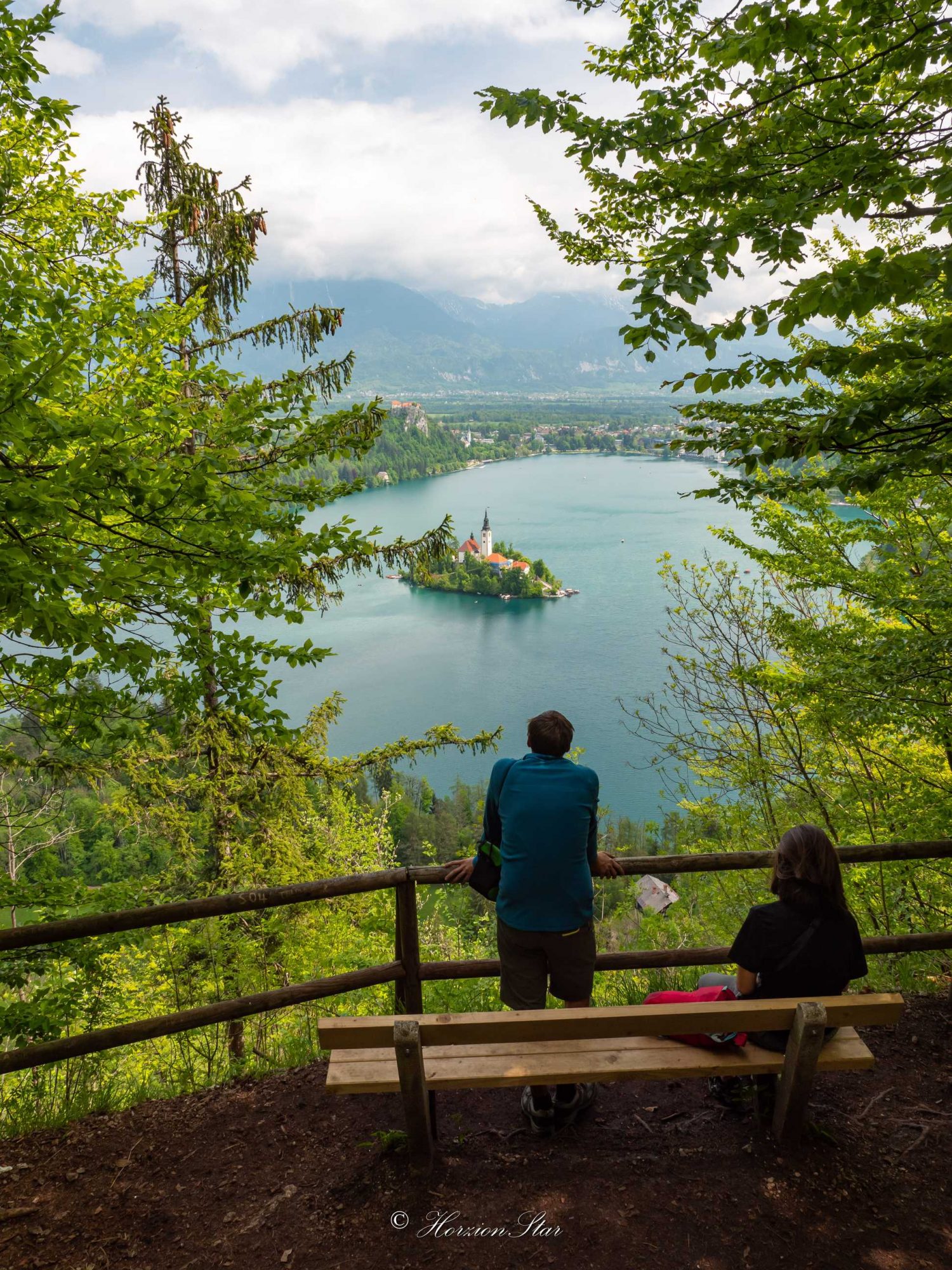 网上经常看到的那张从椅子背的爱心把bled教堂围起来那个是在V点拍的。建议你们去O点,有余力可以去V点。