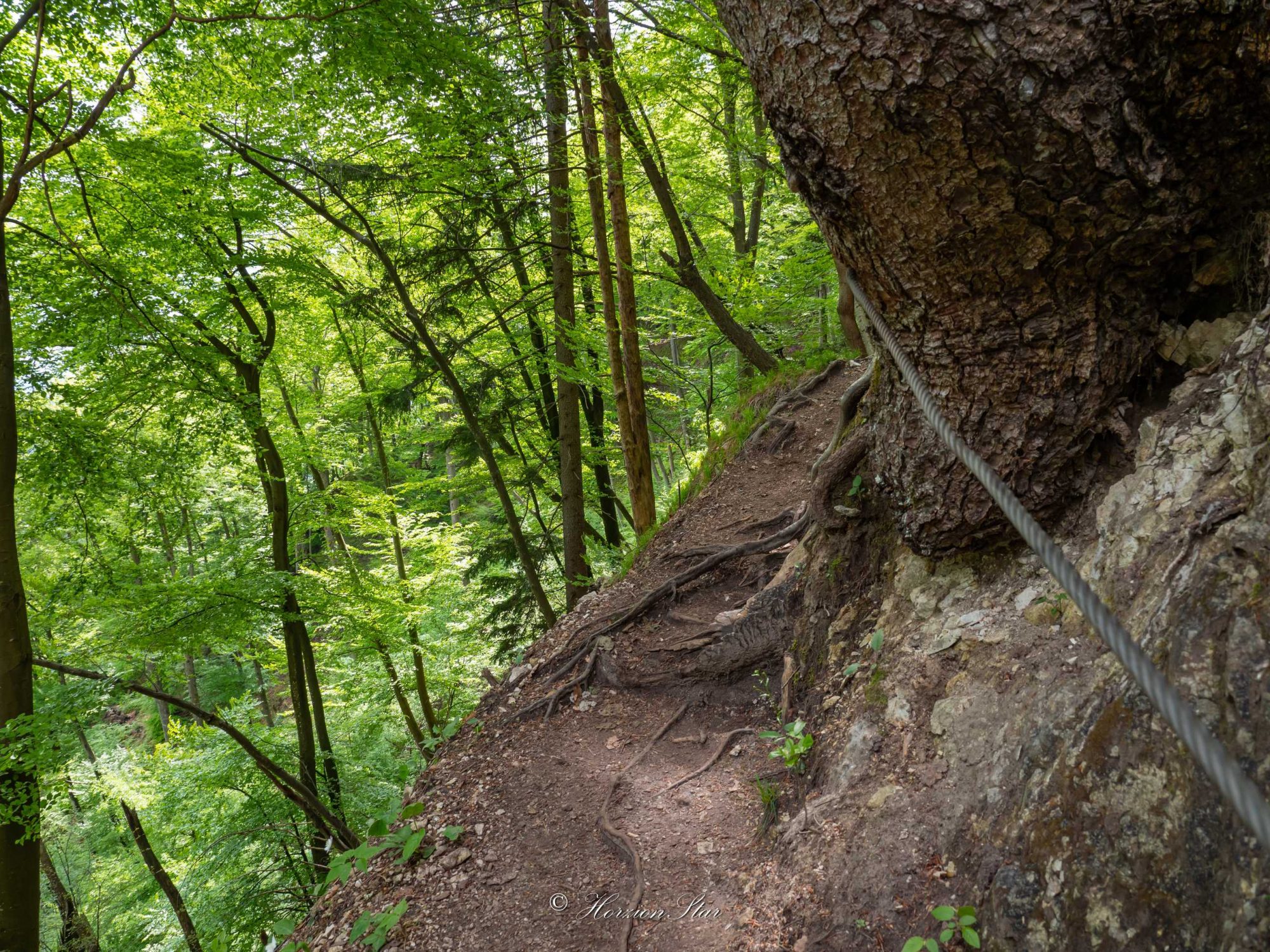 继续走,步道时不时的变窄到一个人扶着旁边的树根才能过。