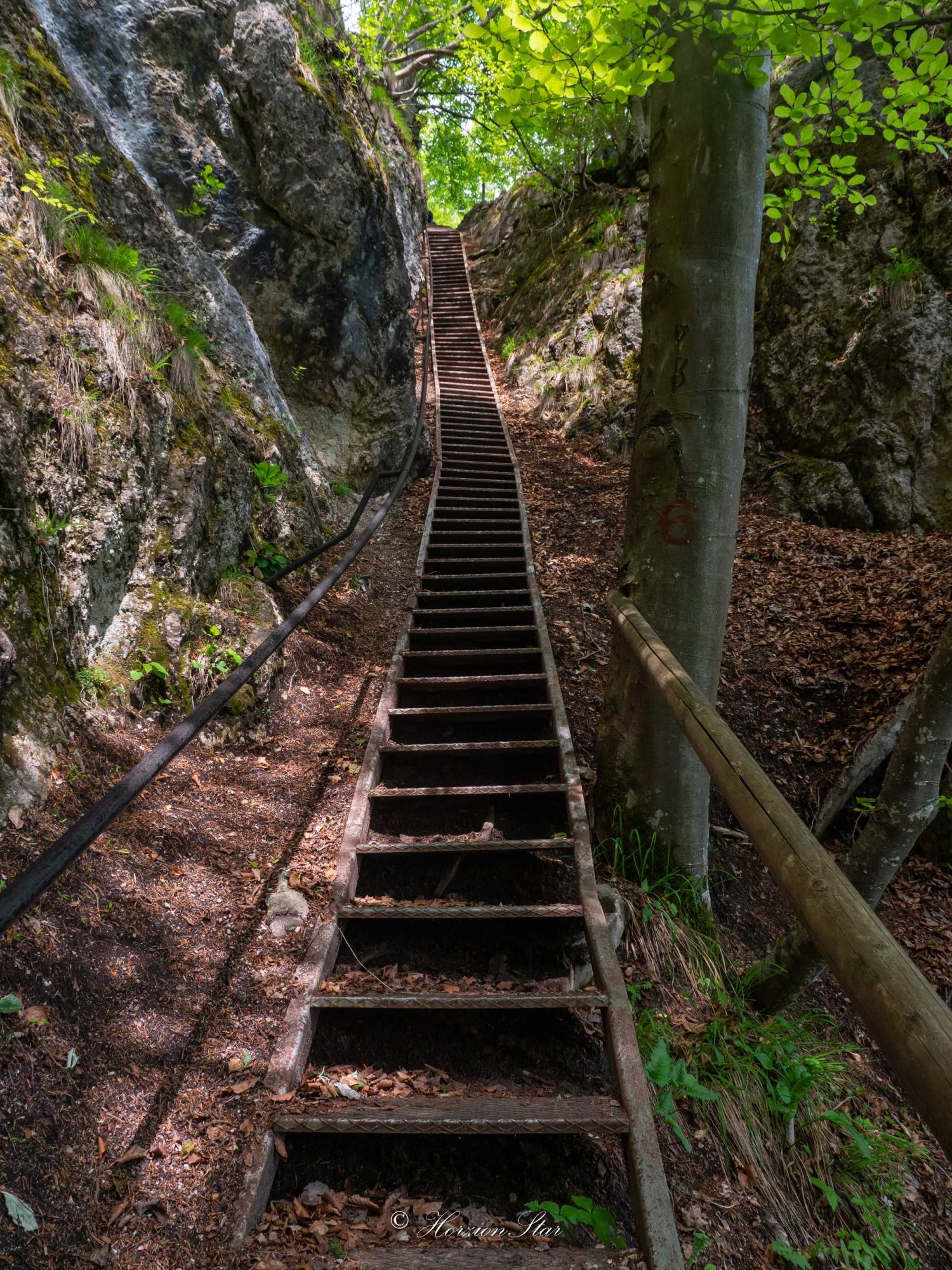 到最后,更来了一个近乎垂直地面的楼梯,有恐高的那位表示打死也不从这条道路回来。