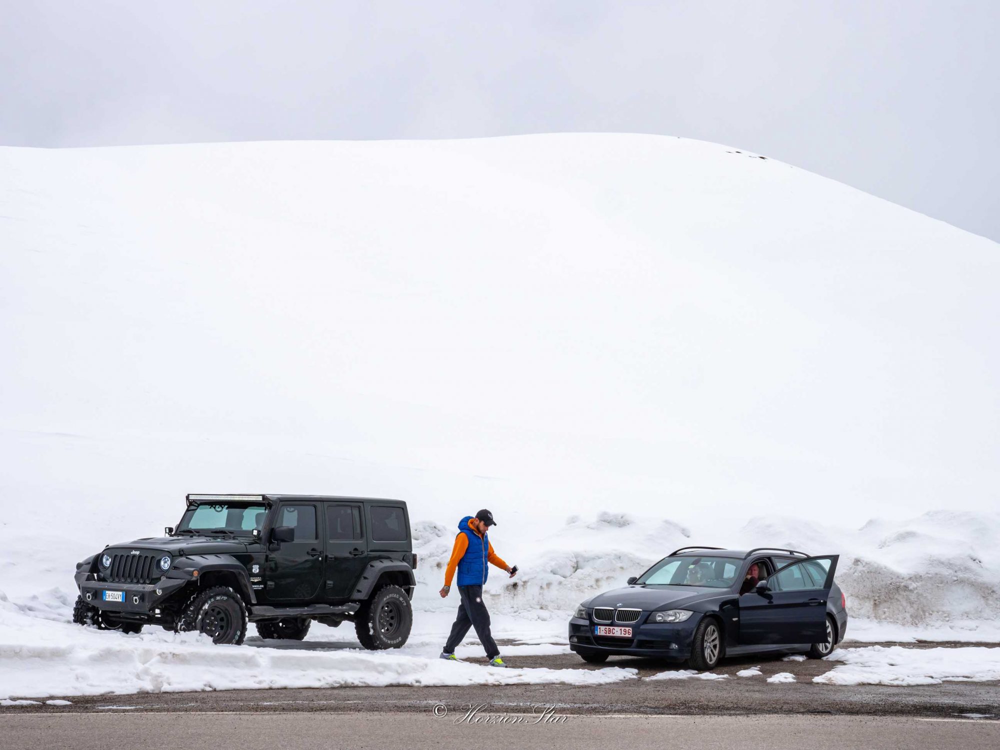 山上没几个人。开吉普的上来了,自恋的在给车拍了几张雪地照。