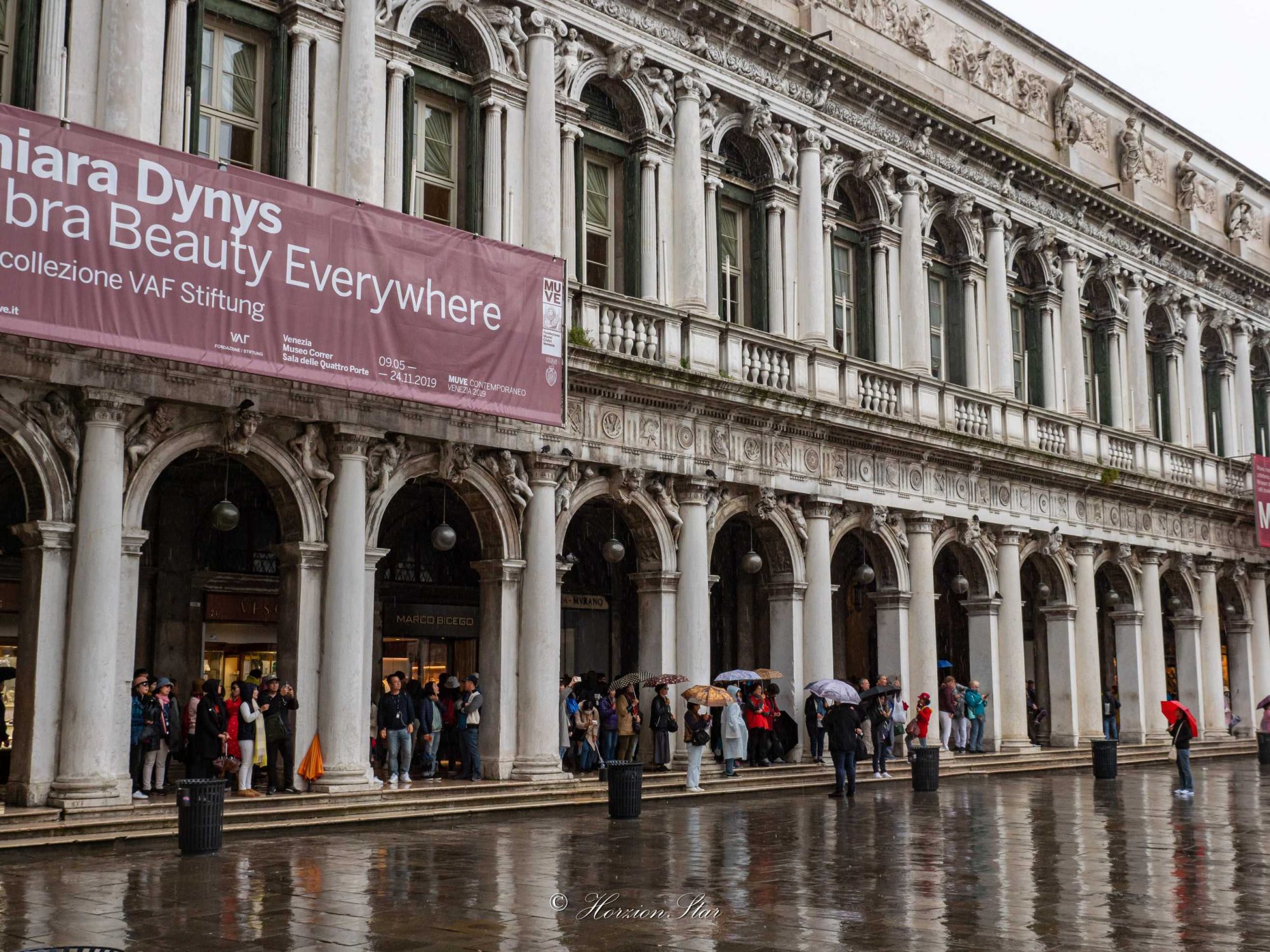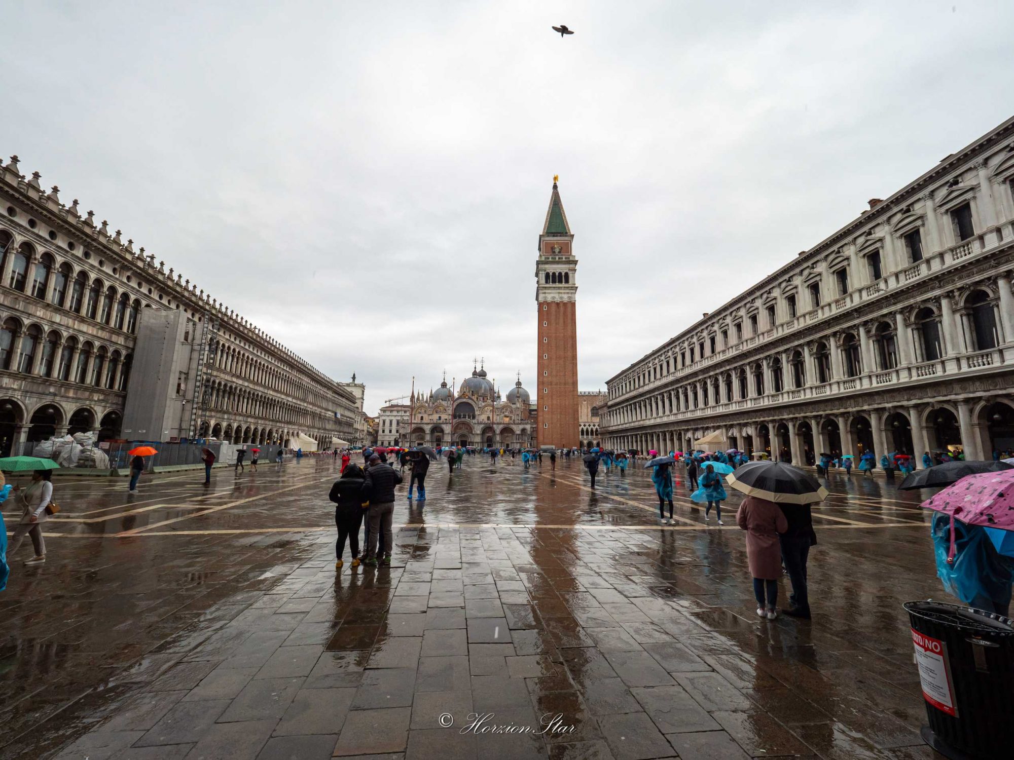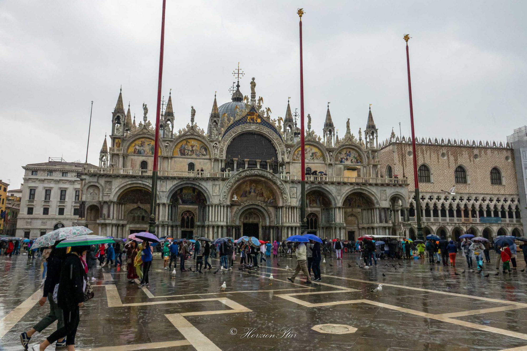 走路7分钟到臭名卓著,哦,世界著名的圣马可广场,下雨天还是满满的人。过道更挤了,大家都躲在走廊里45度看天。