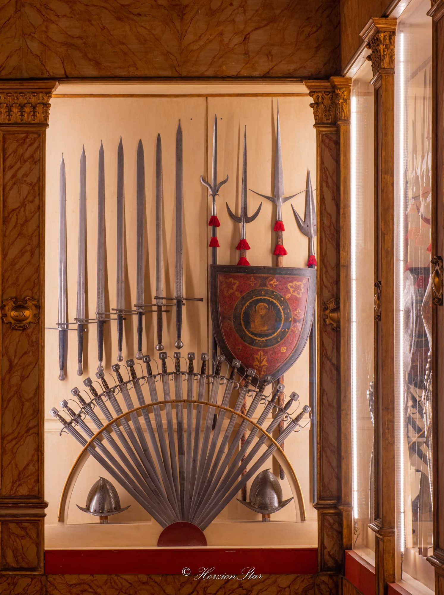 转入战争武器厅。凛冽寒光,剑戟辉映。