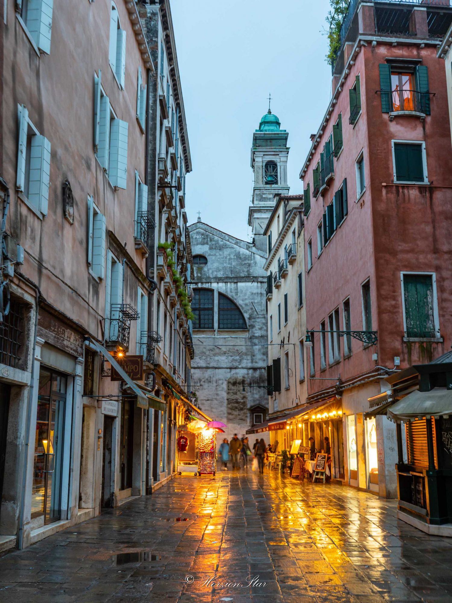 上网上一查才知道,威尼斯建立了警报系统,当有潮水要超过警戒线的时候,就提前开始拉警报。水位越高,警报声越多。傍晚听到的警报就是这个原因了。以前在网上看到别人住威尼斯里面,拍的小巷夜景很有味道,以为这次能够拍到。但是味道有了,没法夜游。