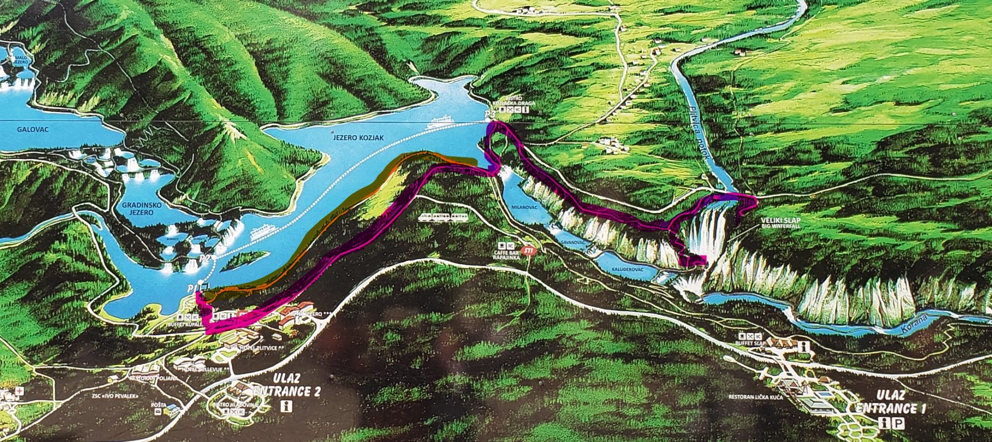 紫红色是今天行走路线在大瀑布前不按原路返回,而是从后面的楼梯爬上去。山势比较陡,好在下山路很缓。那橘红色是啥意思?那个是想走结果不小心走错了结果没走的路T_T