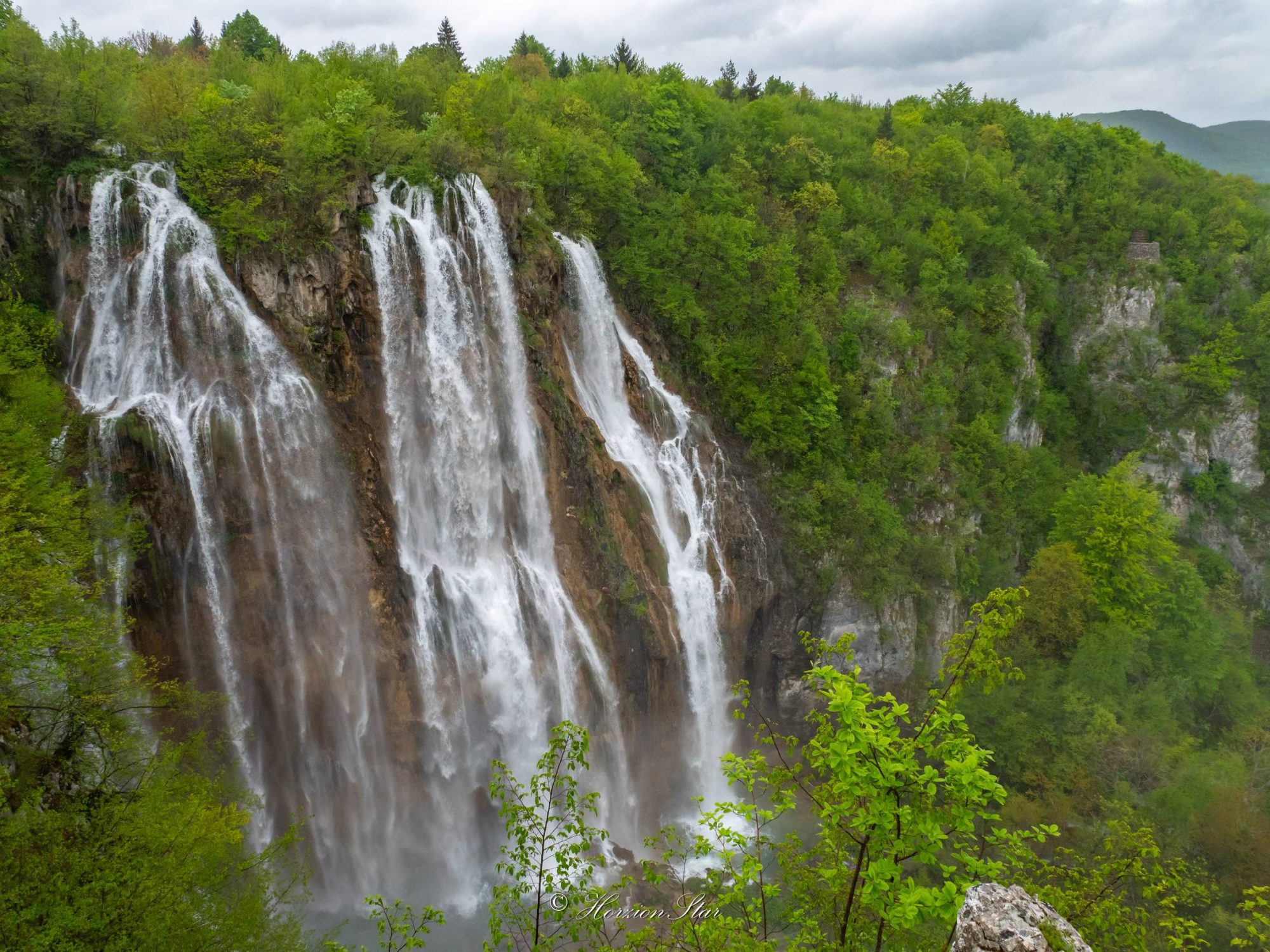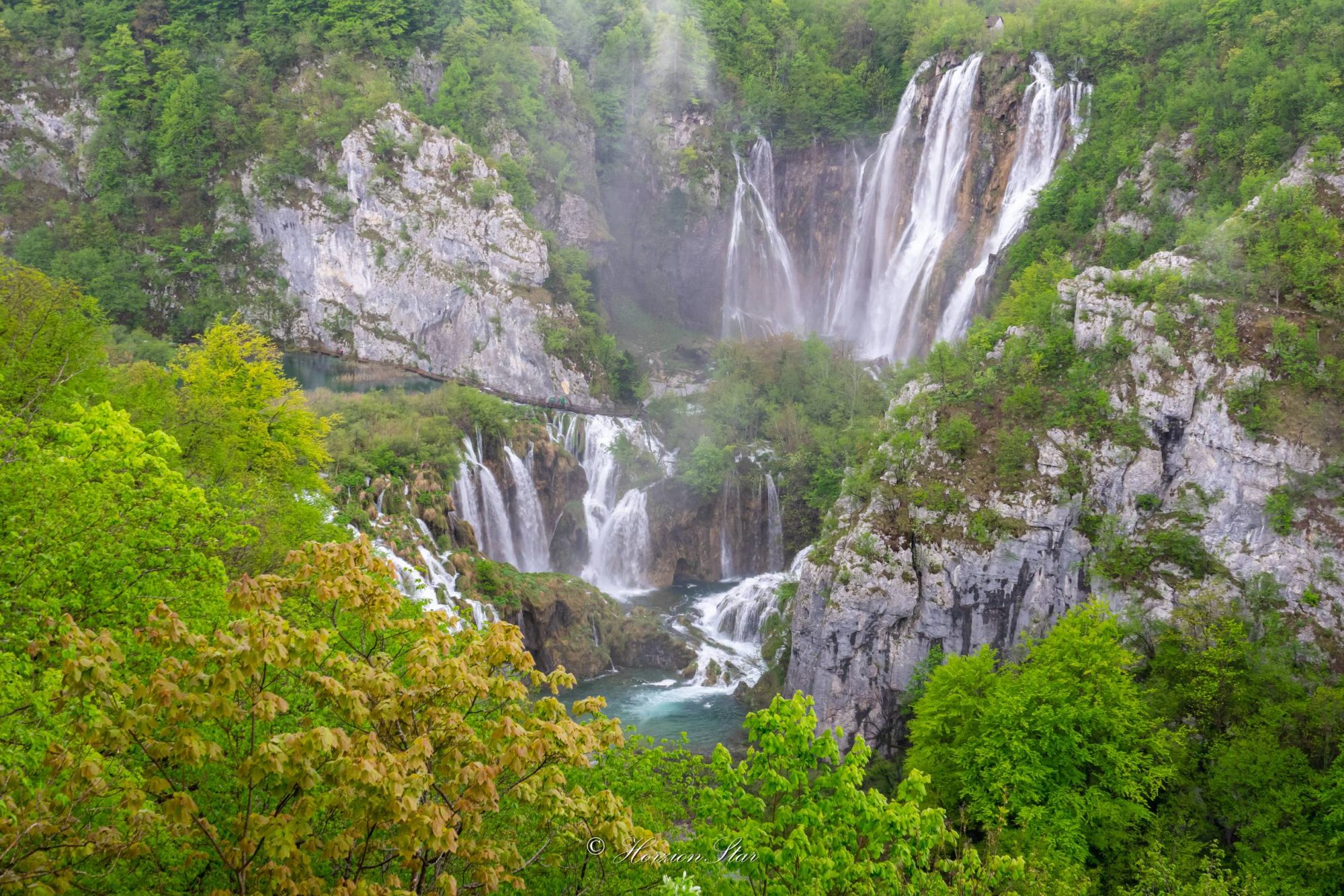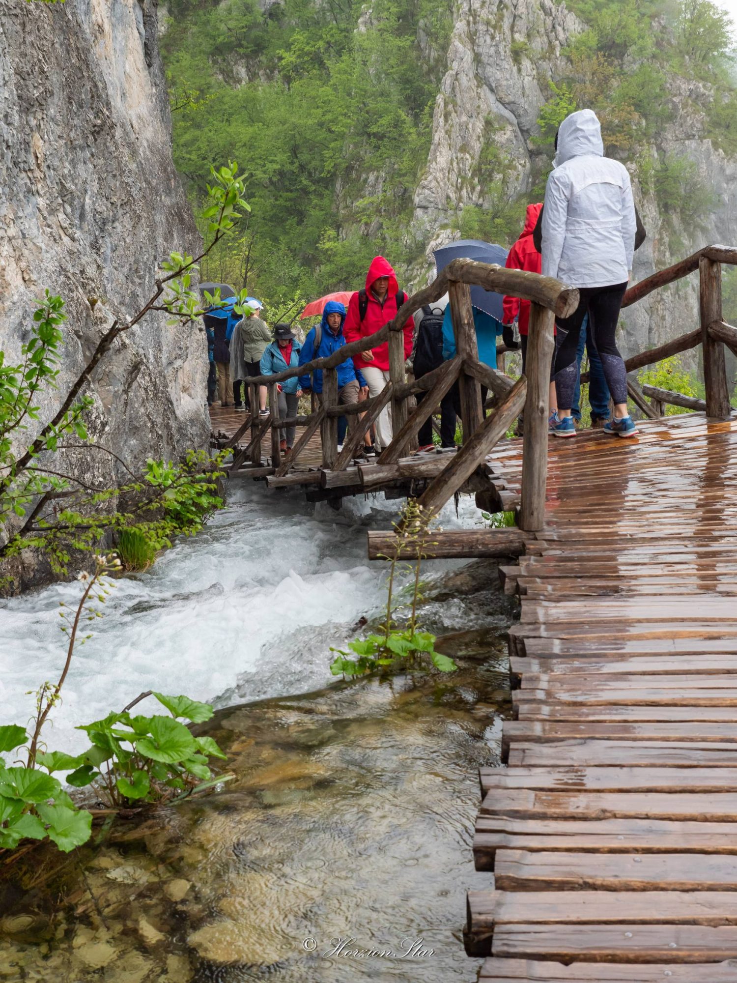 喘一口气。楼梯上面有一个观景台。再往上走,有一个木棚。很多人都左转了。但是到这里必须右转。走几步,就又是一个观景台,俯瞰对面的大瀑布。
