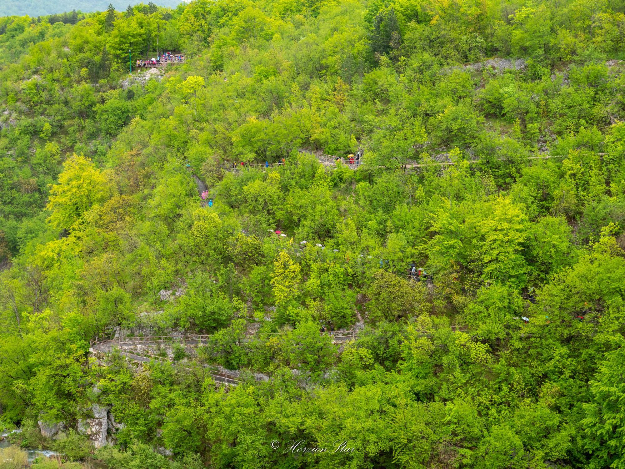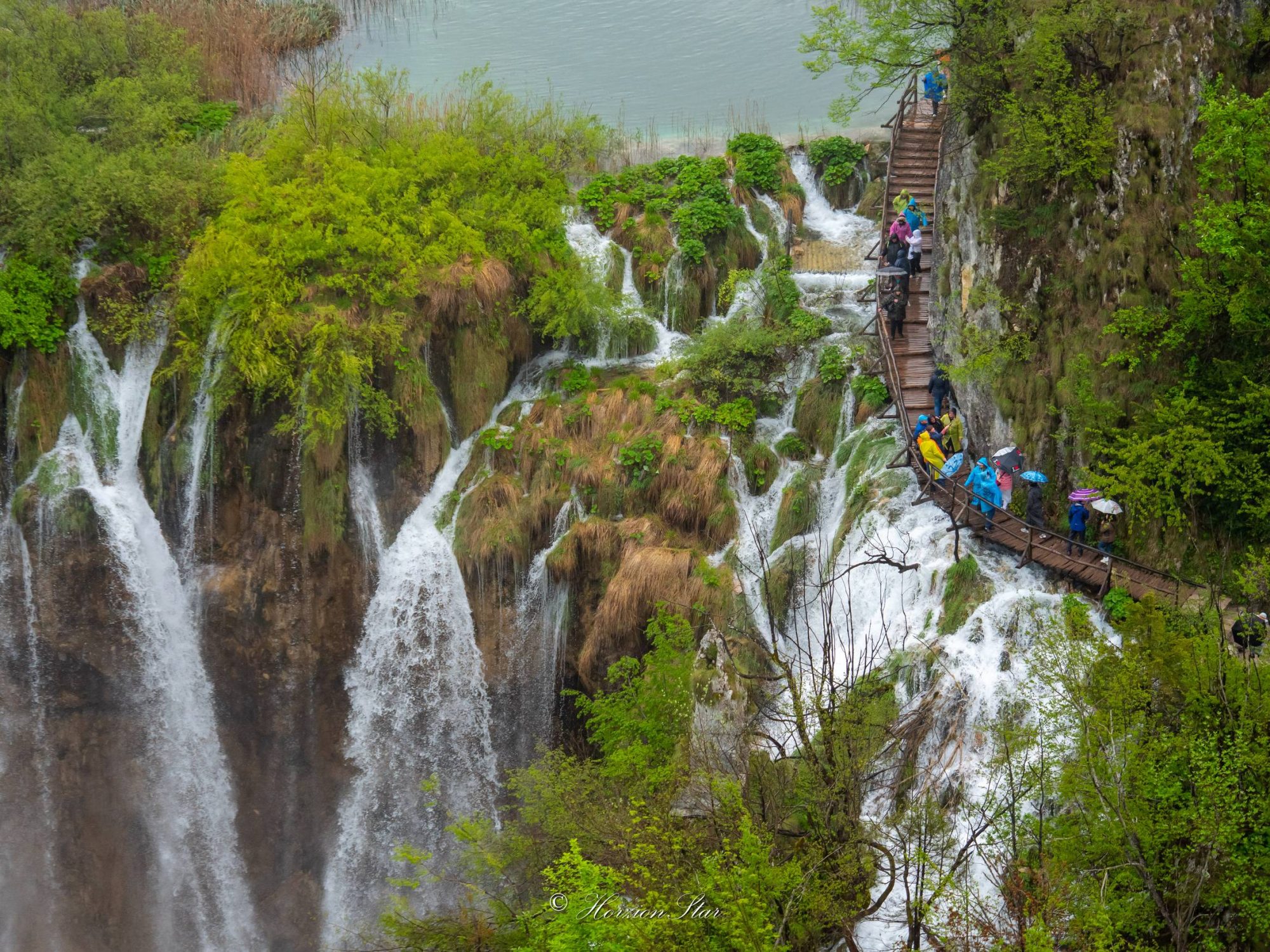 一朵朵密集的伞沿着之字形步道丛林中若隐现,标示着旅游团出没。