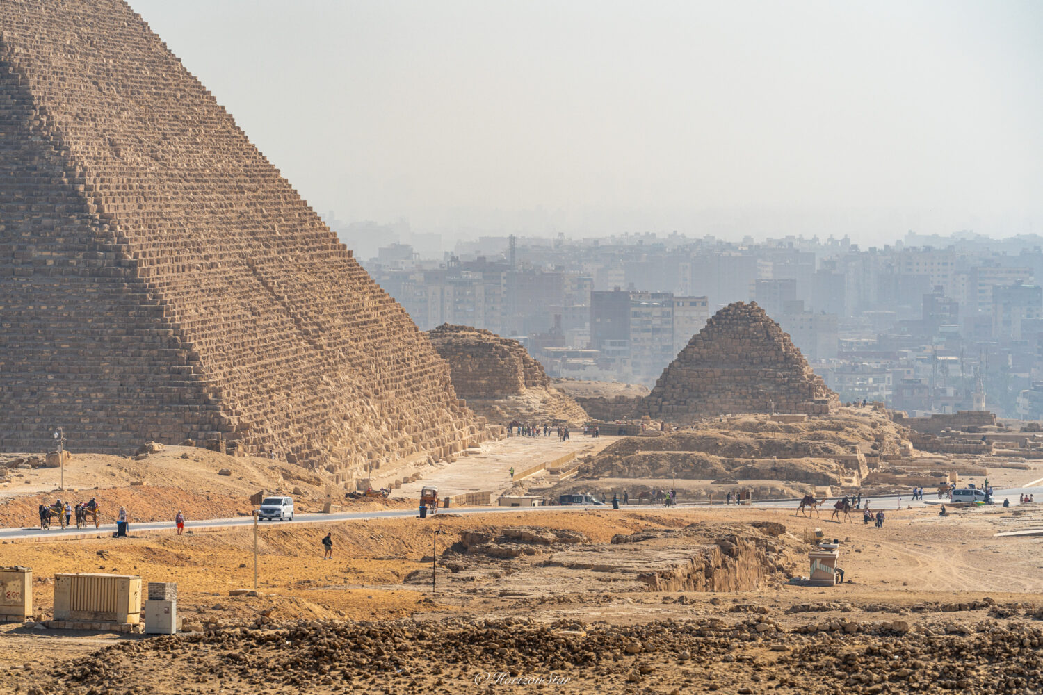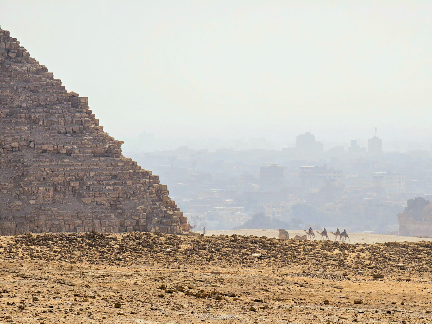 见面打过招呼后,阿里说现在天气好,所以先去吉萨金字塔。等晚一点可能haze升起来,就看不清金字塔了。我问他 haze 从哪里来。他说是尼罗河的水汽蒸腾。但是见过埃及雾霾的我们知道不是这个样子的。阿里作为一个埃及的导游,一直在竭力维护着自己国家的光辉形象。这一点从未来两天的交谈中随处都能感觉出来。