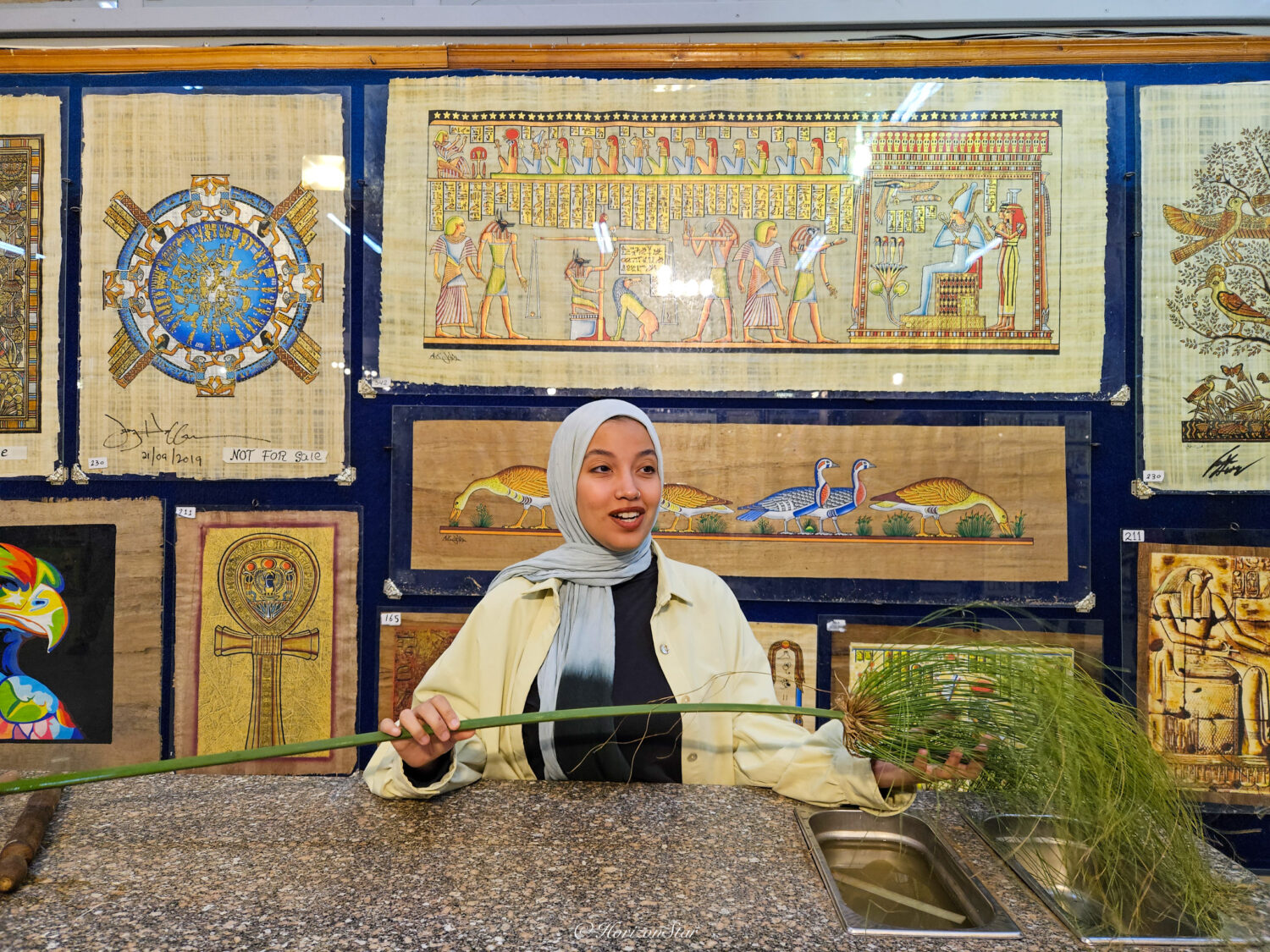 伤今怀古之后,就要去买纪念品。当然不是强制性的购买,而且也确实领我们去了一家特殊的礼品店:莎草纸商店。