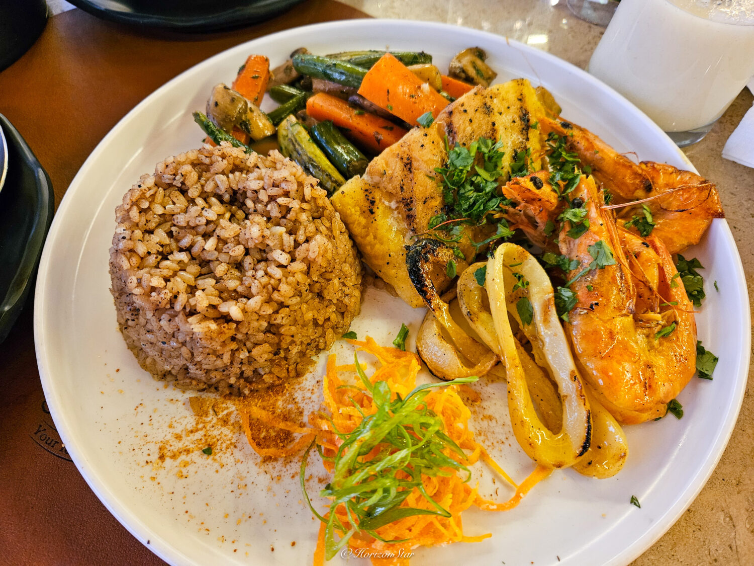 今晚没有金字塔灯光秀。夜幕中吃完晚饭,结束了一天的行程。