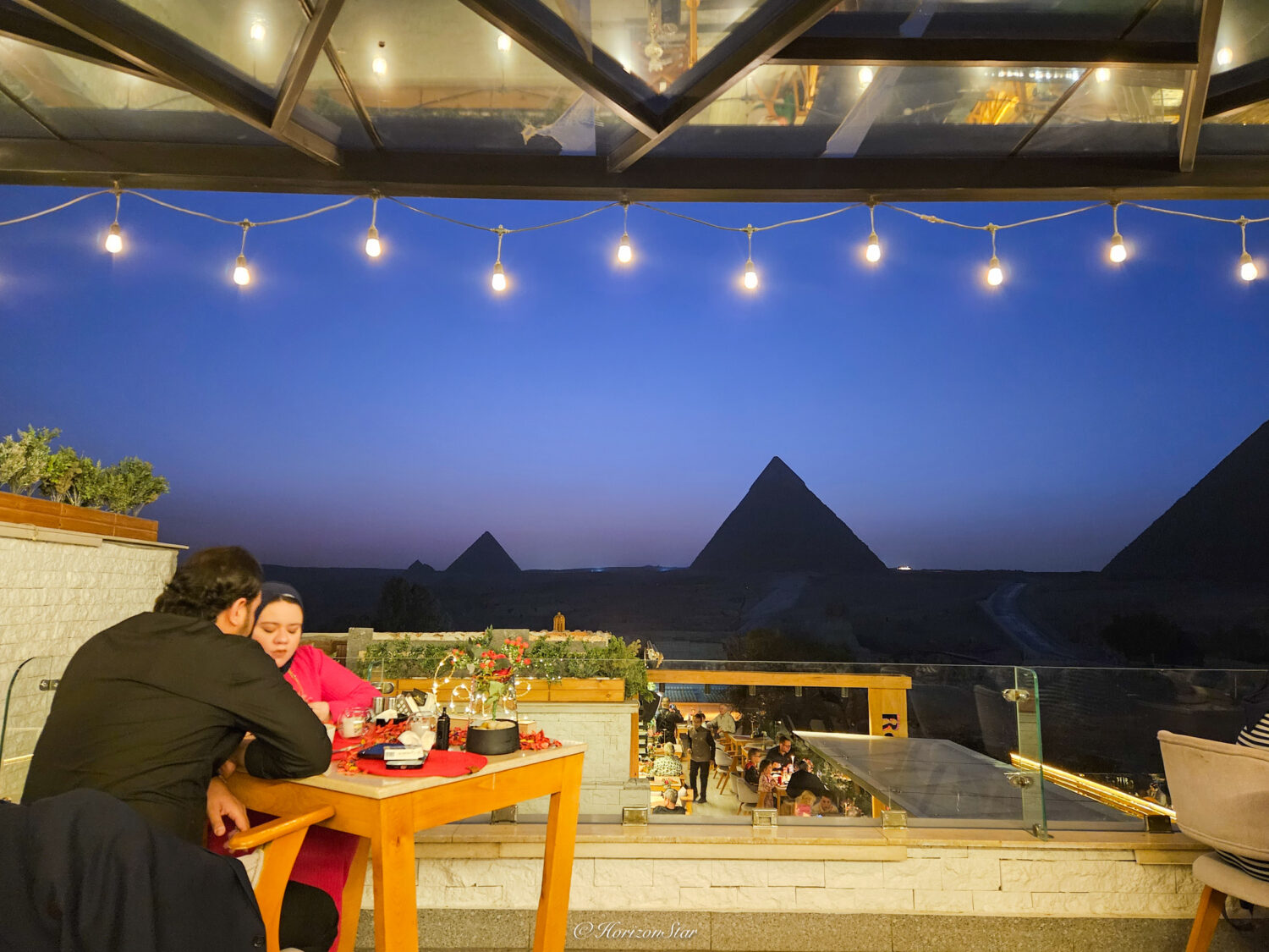 去屋顶早餐厅,看朝阳下的金字塔和狮身人面像。在哪里能有吃着早饭,佐以金字塔的悠闲?