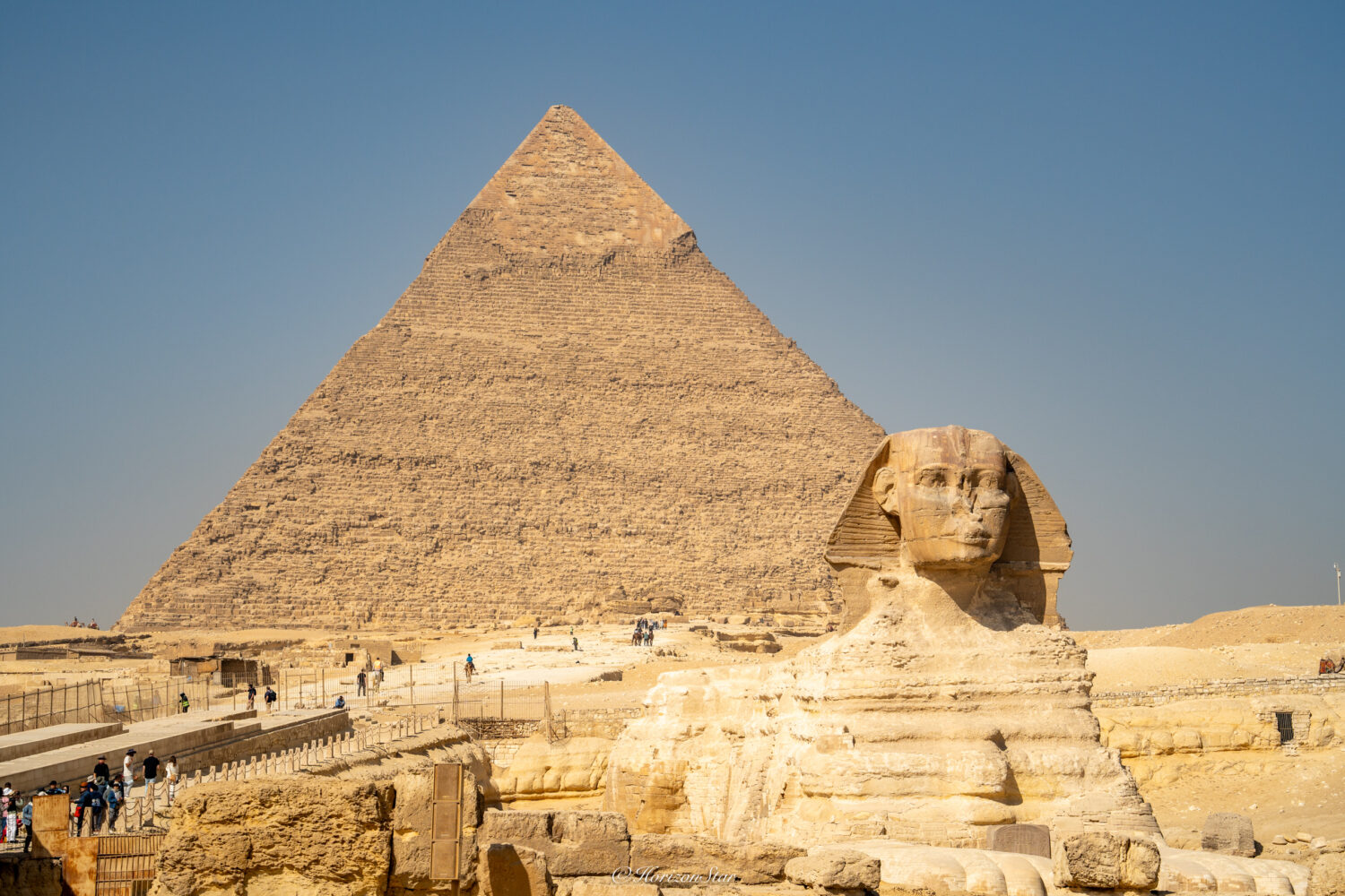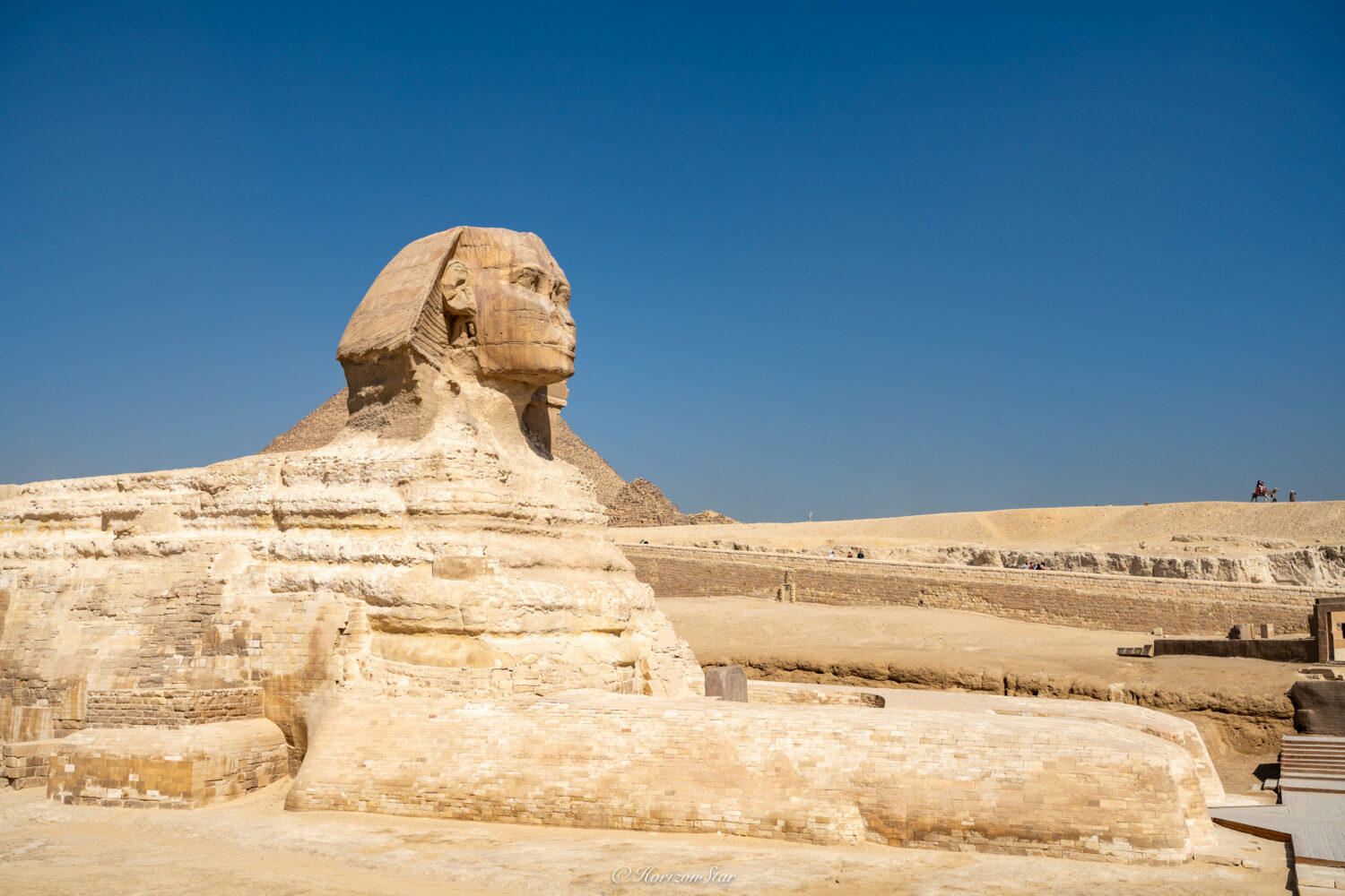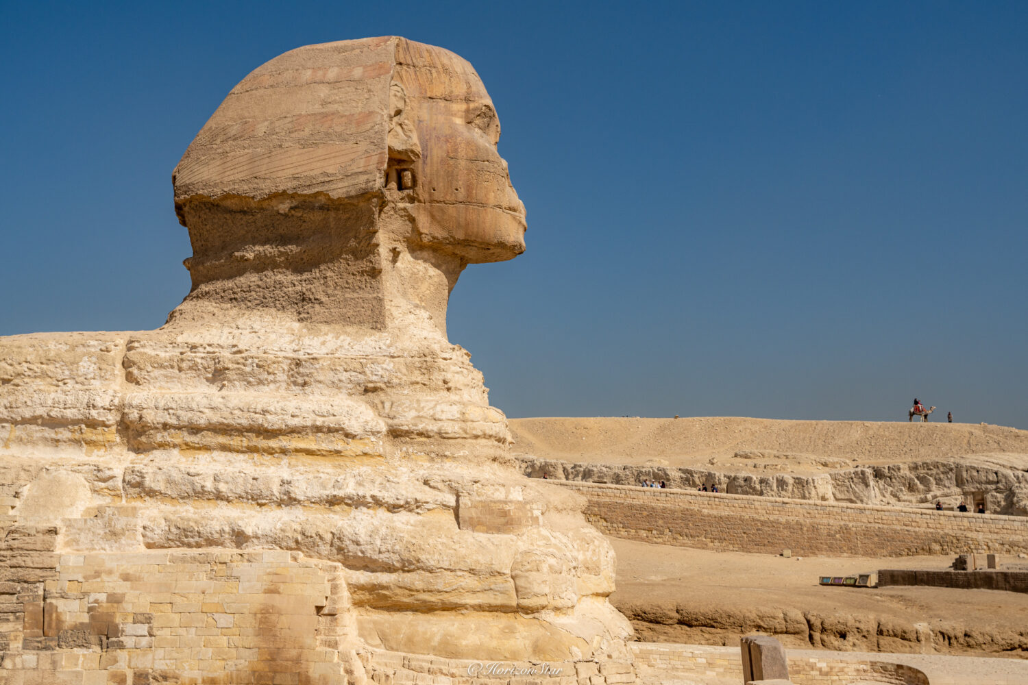 神秘的斯芬克斯静静地趴卧在这里4000多年,看埃及文明到达了顶峰,看他楼塌了。不知道他还会不会再问路人谜语,答不出的人就把他吃掉。哦,不对,那个是希腊人的斯芬克斯。事实上,这座卡夫拉法老建的狮身人面像原本有自己的名字,但是大家都忘了它叫啥了。2000多年后希腊人来了之后,一看这个伟大的雕像,说这不就是我们的谜语人斯芬克斯嘛,狮身,人面都对上了,没错的。也不管他们的谜语神斯芬克斯是有翅膀的女神,这个是没翅膀的卡夫拉面容。于是斯芬克斯的名字就流传了下来。